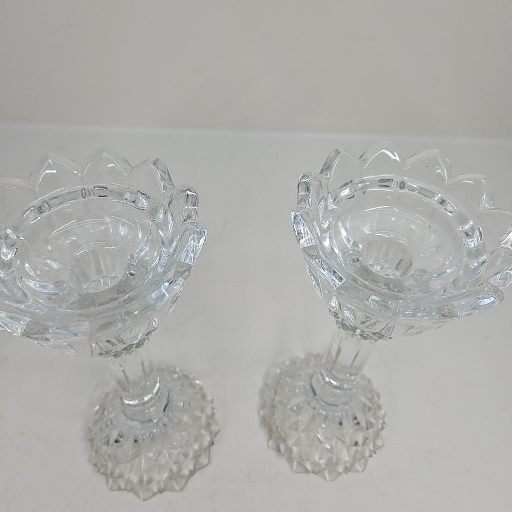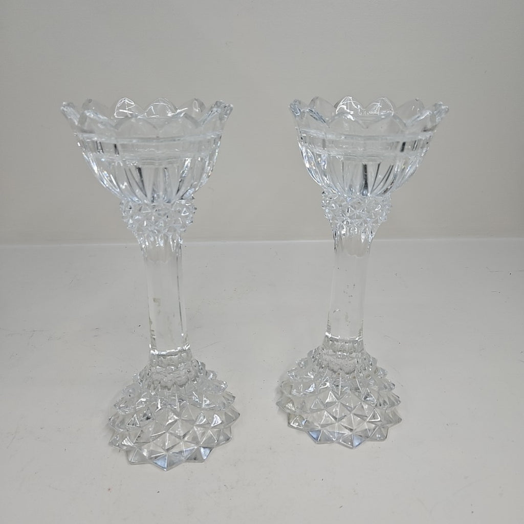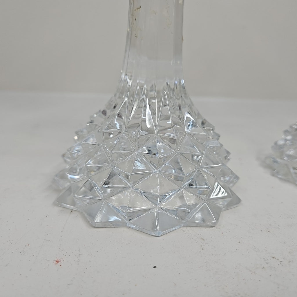 Set of 2 Vintage Cut Glass Candle Holders - 10" Tall