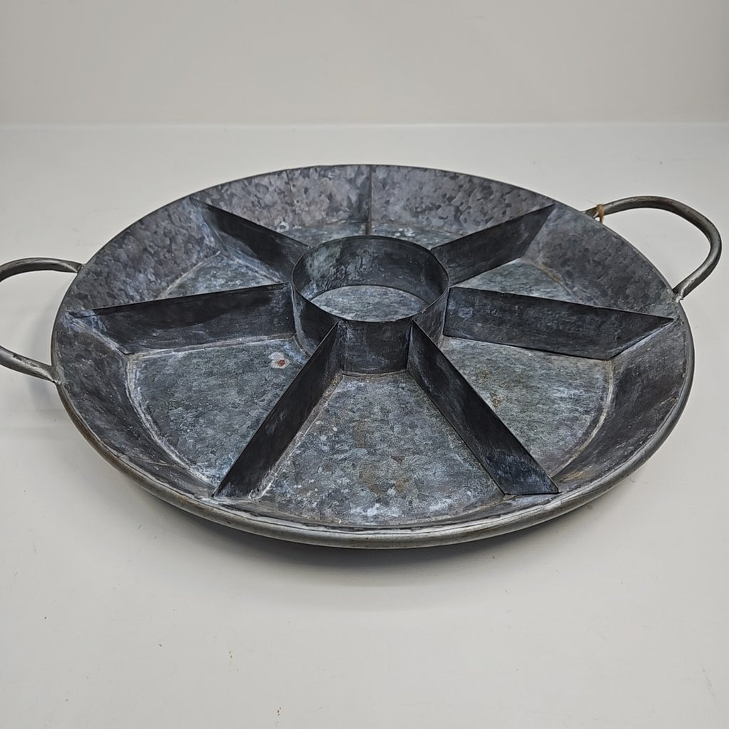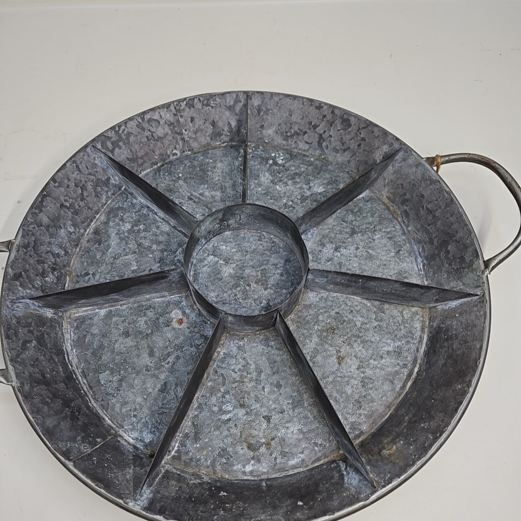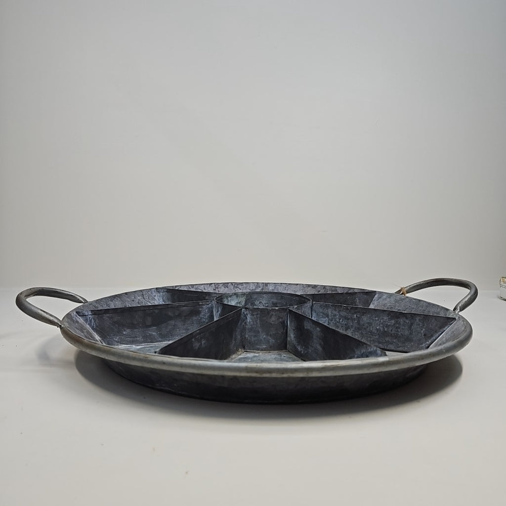 Galvanized Metal Divided Tray w/ Handles - 22" Wide