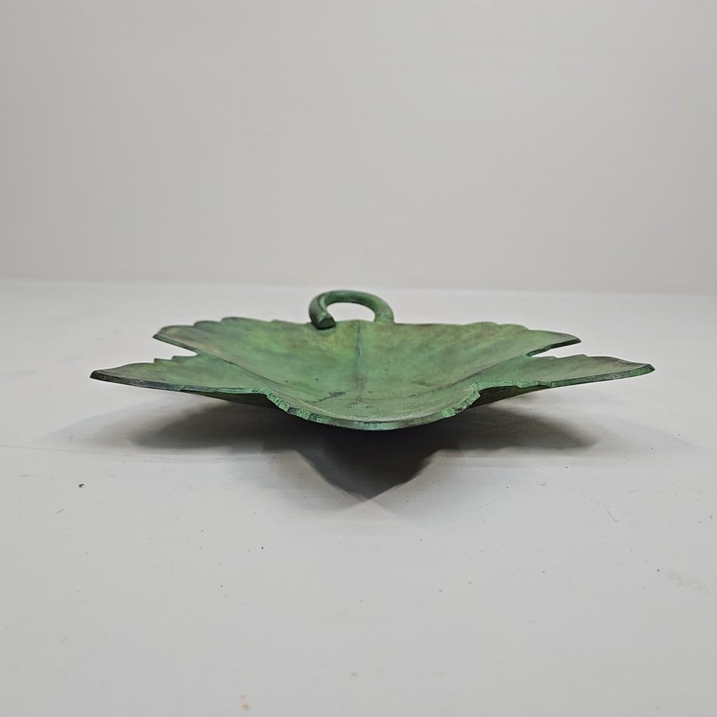 Small Metal Green Leaf Shaped Bowl - 1.5" Tall