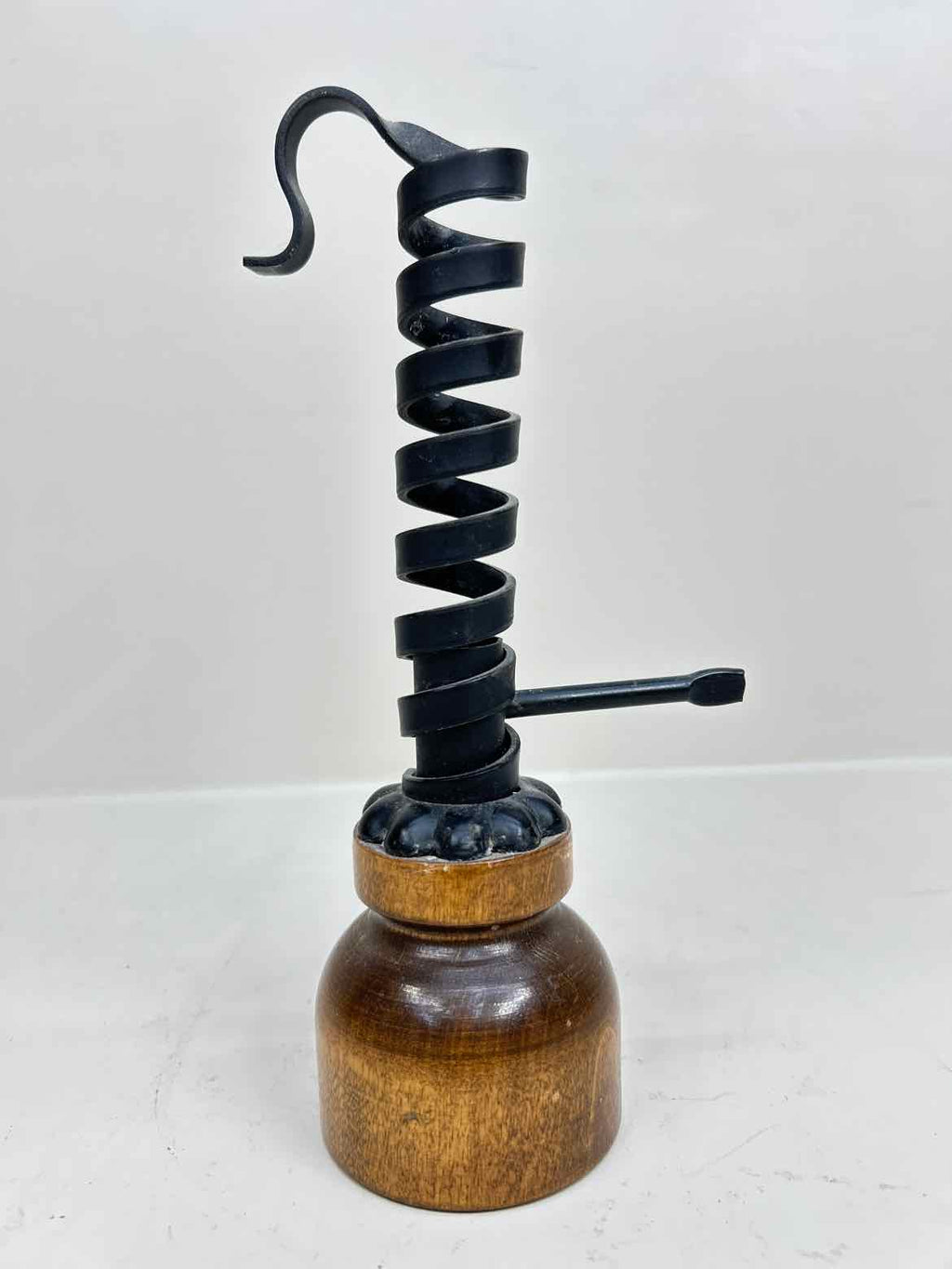 Vintage Wood & Metal Spiral Courting Candle Holder - 9.5" Tall
