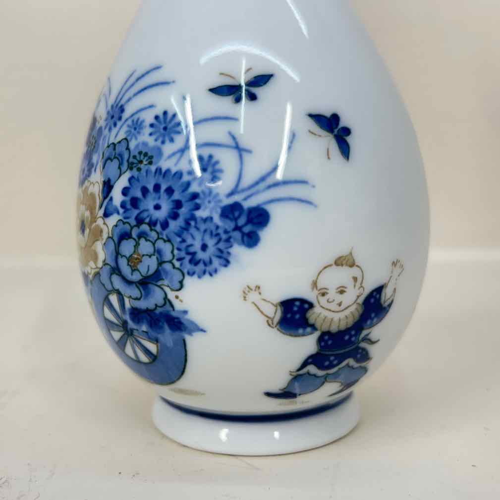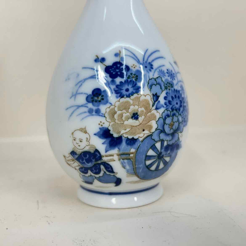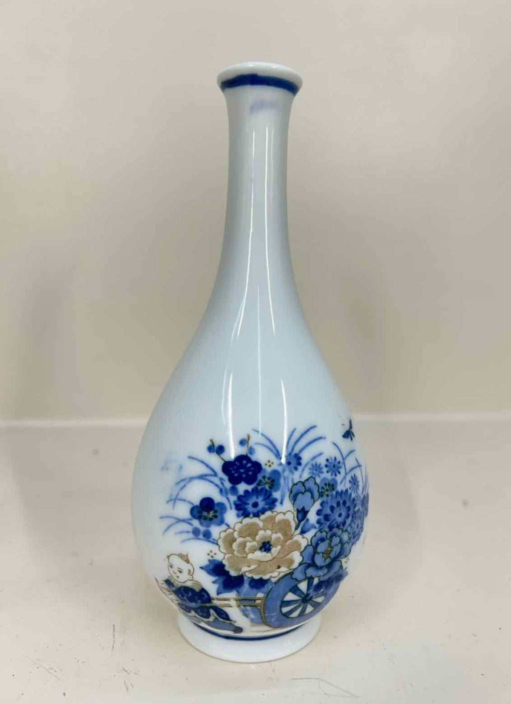 Vintage Blue & White Porcelain Bud Vase - 7" Tall