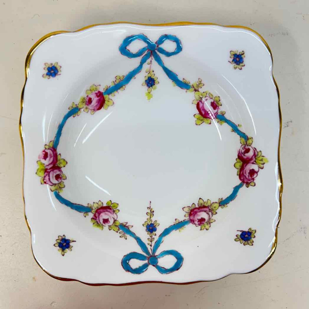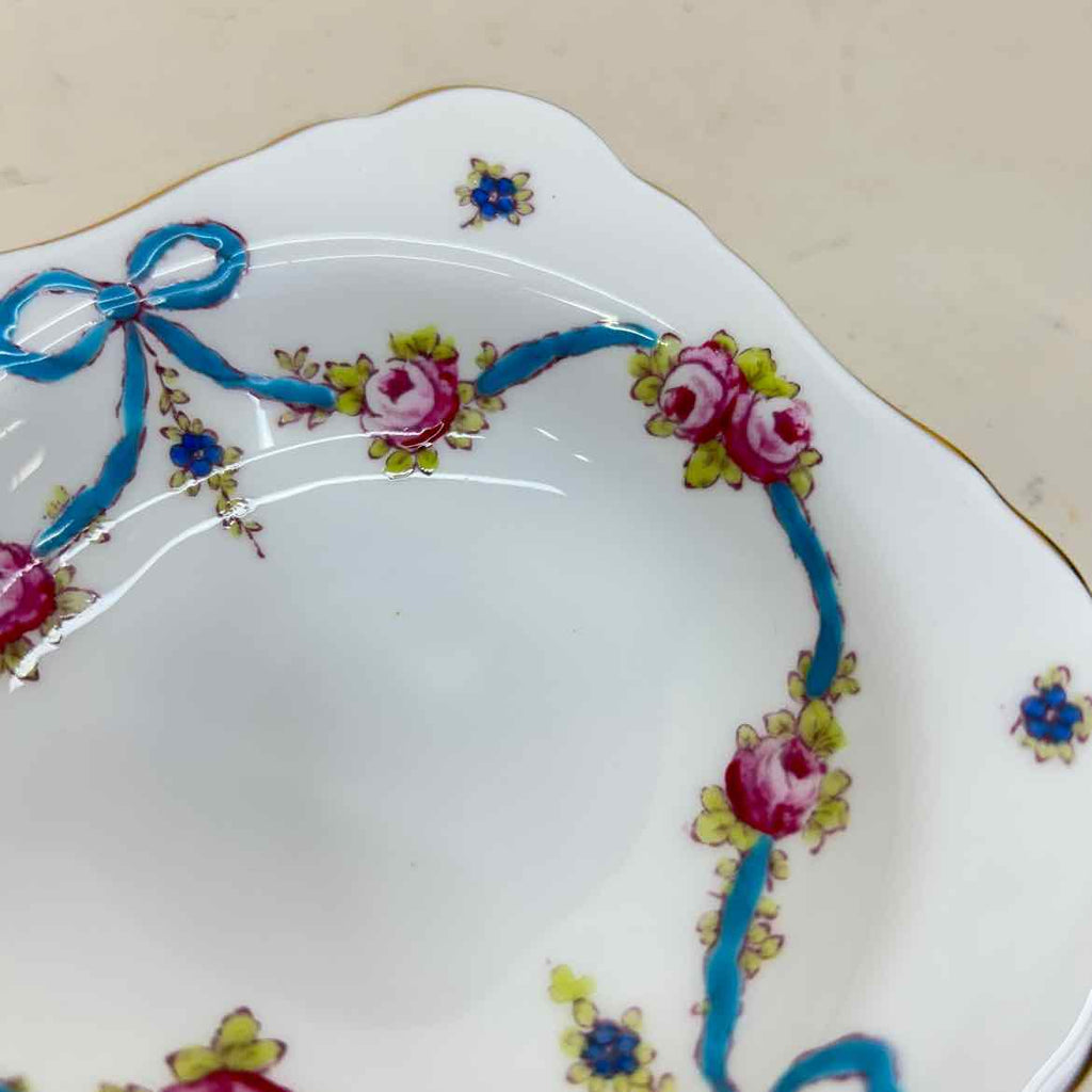 Crown Staffordshire Blue Bow Pattern Trinket Dish - 1" Tall x 4.5" Wide