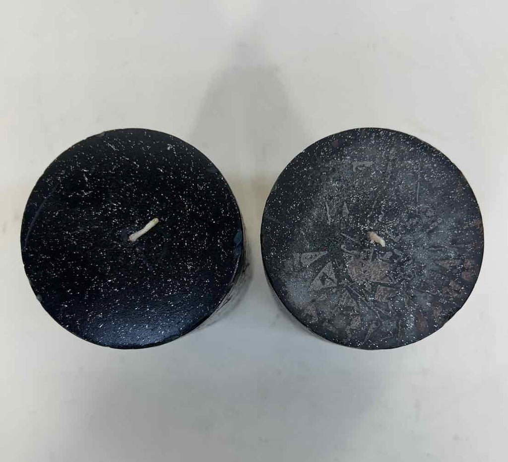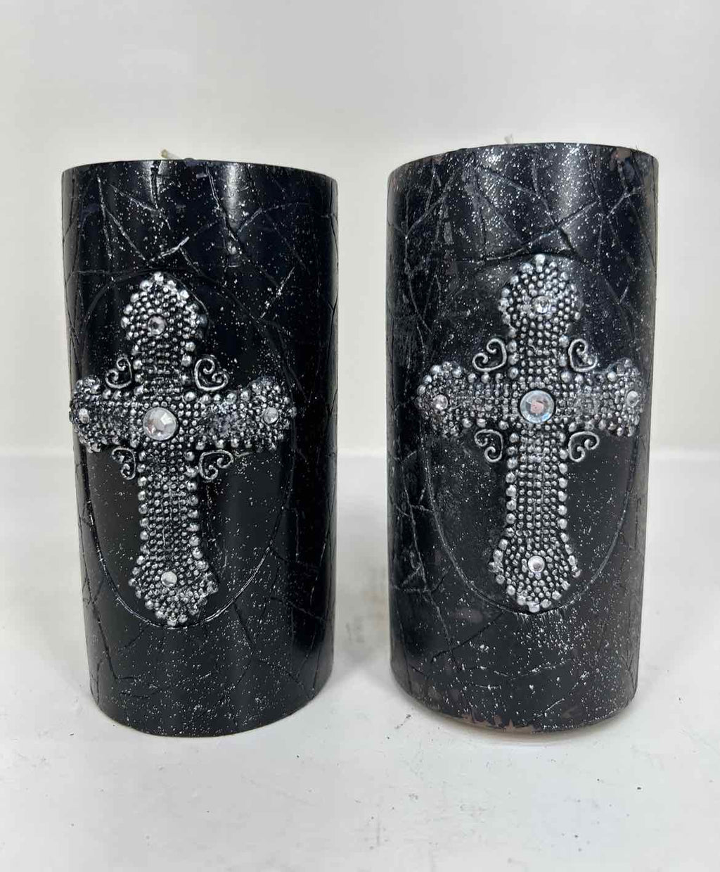 Set of 2 Black Candles w/ Cross Details - 6" Tall