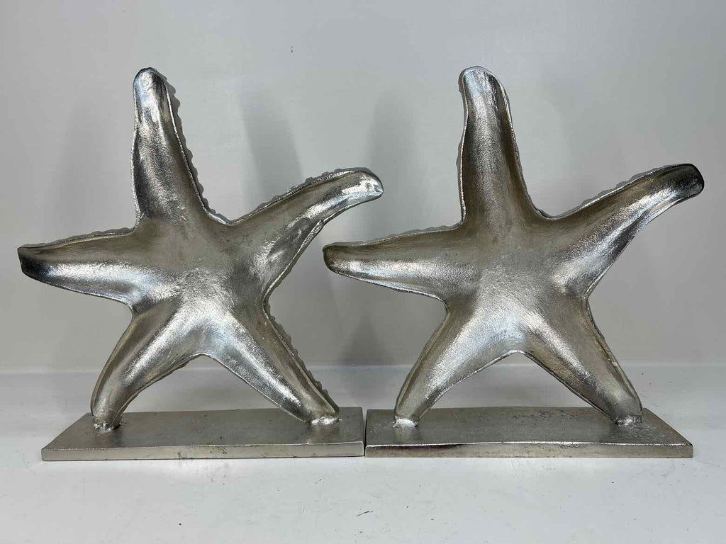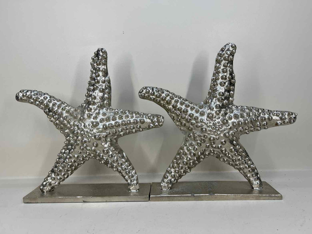 Set of 2 Chrome Starfish Bookends - 15" Tall x 15" Wide