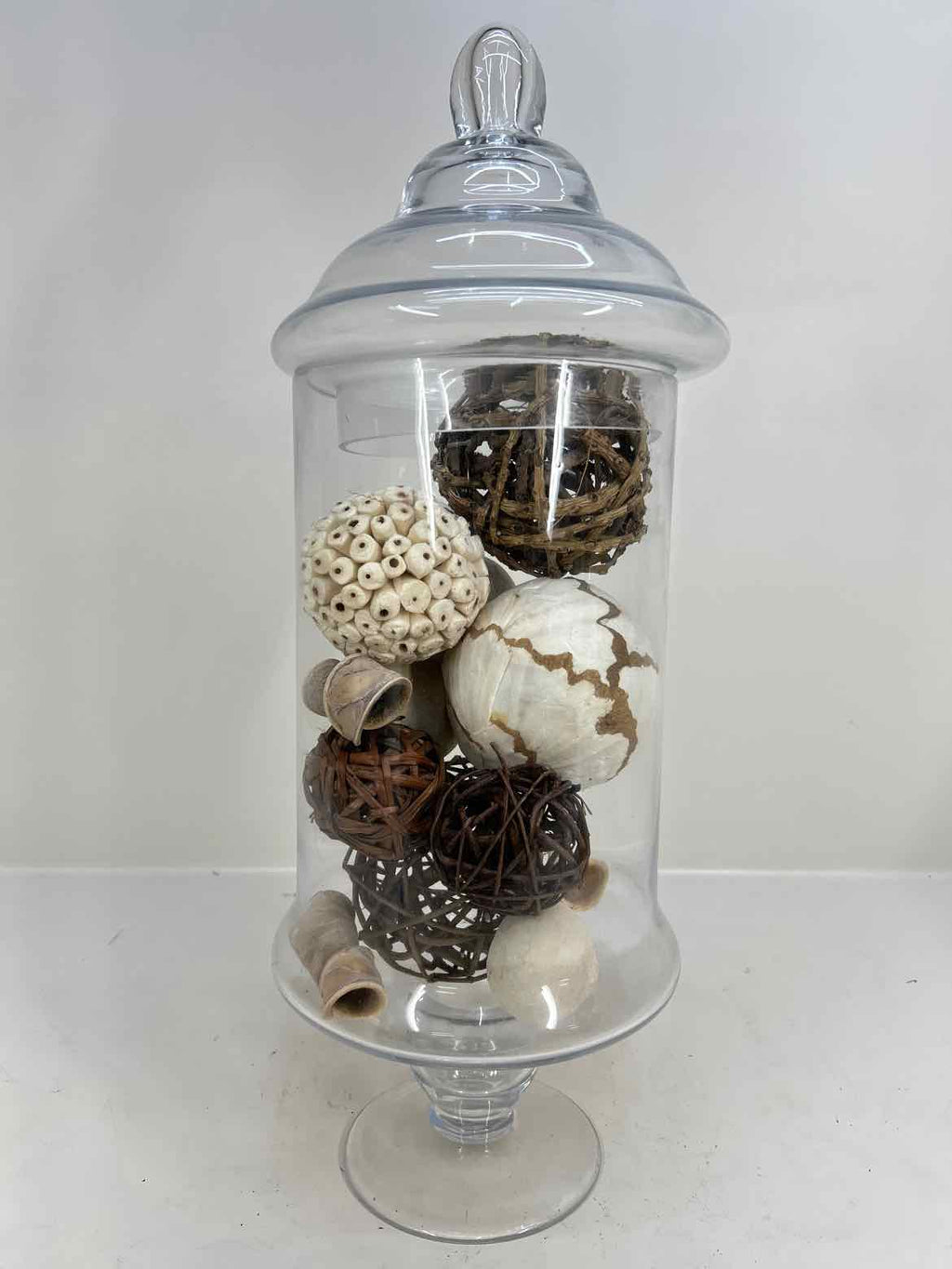 Clear Glass Apothecary Style Jars w/ Rustic Decor Contents - 20" Tall x 8" Wide