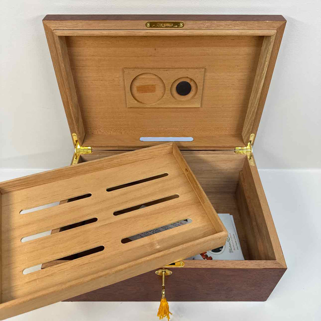 Solid Wood Cigar Box w/ Key - 6.5" Tall x 13.5" Wide x 9.5" Deep