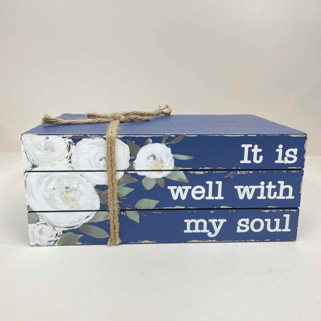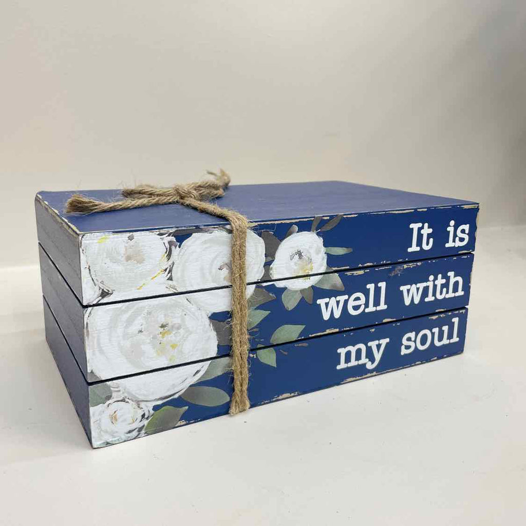Blue & Floral " It Is Well With My Soul " Wood Decor - 4" x 9.5"