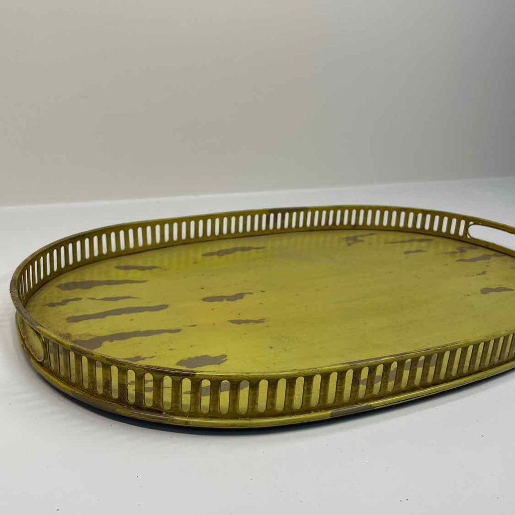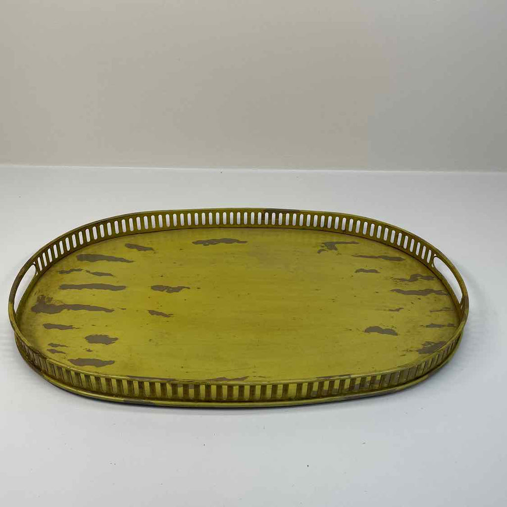 Oval Metal Tray w/ Handles - Distressed Yellow Finish - 20" x 13"
