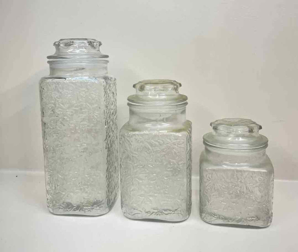 Set of 3 Fantasia by Princess House Cannisters & Lid - 12" Tall