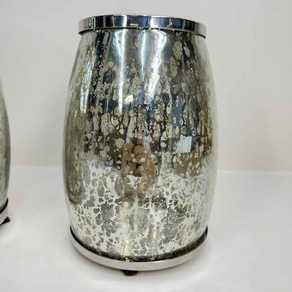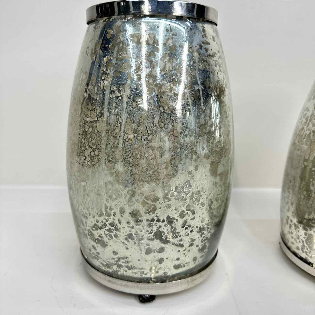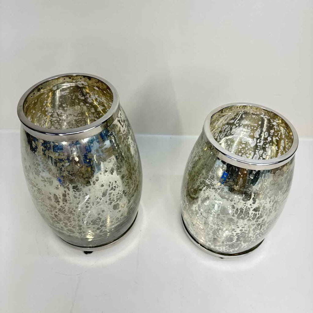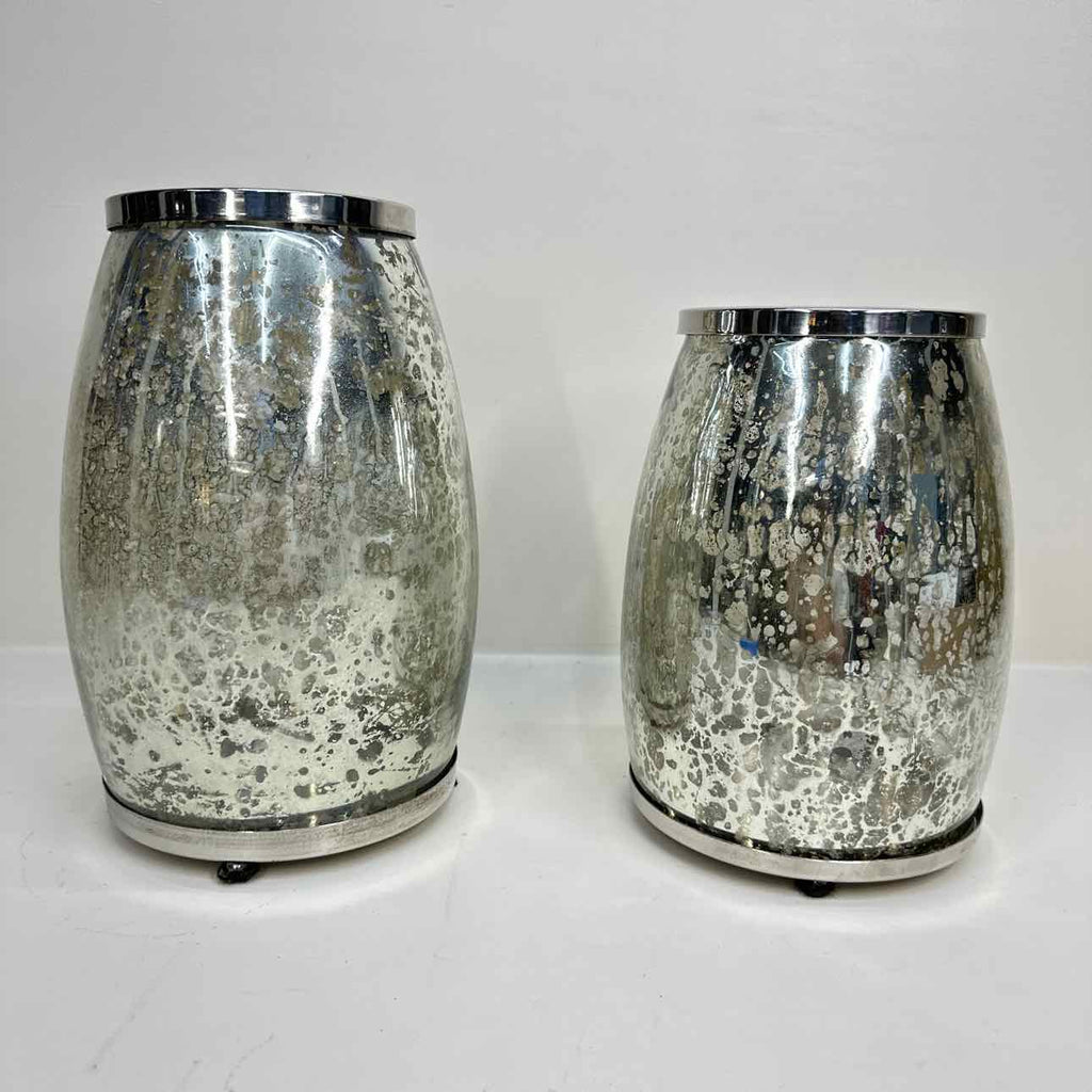 Set of 2 Large Mercury Glass Candle Holders - 10" & 12" Tall