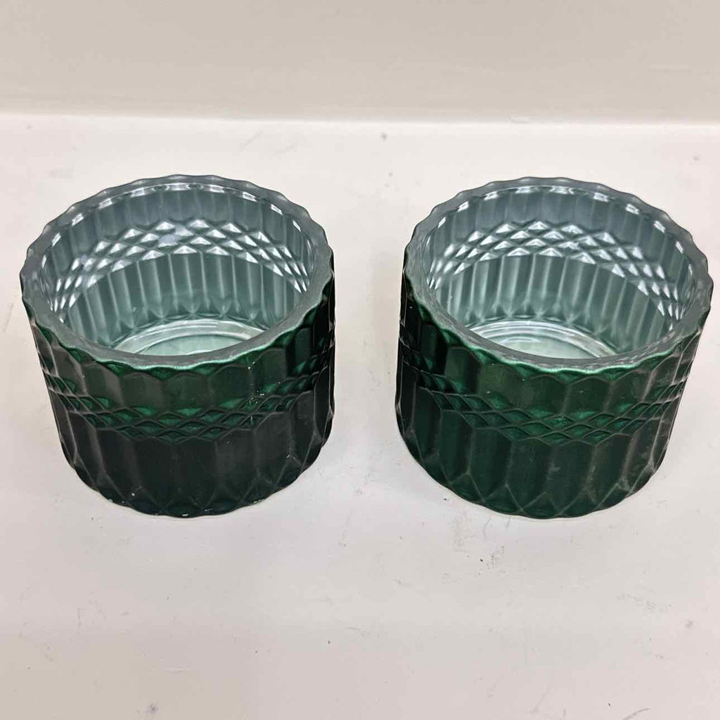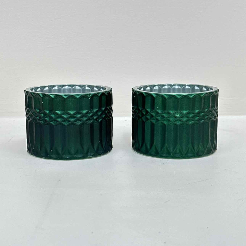 Set of 2 Frosted Green Candle Holders - 2.5" Tall