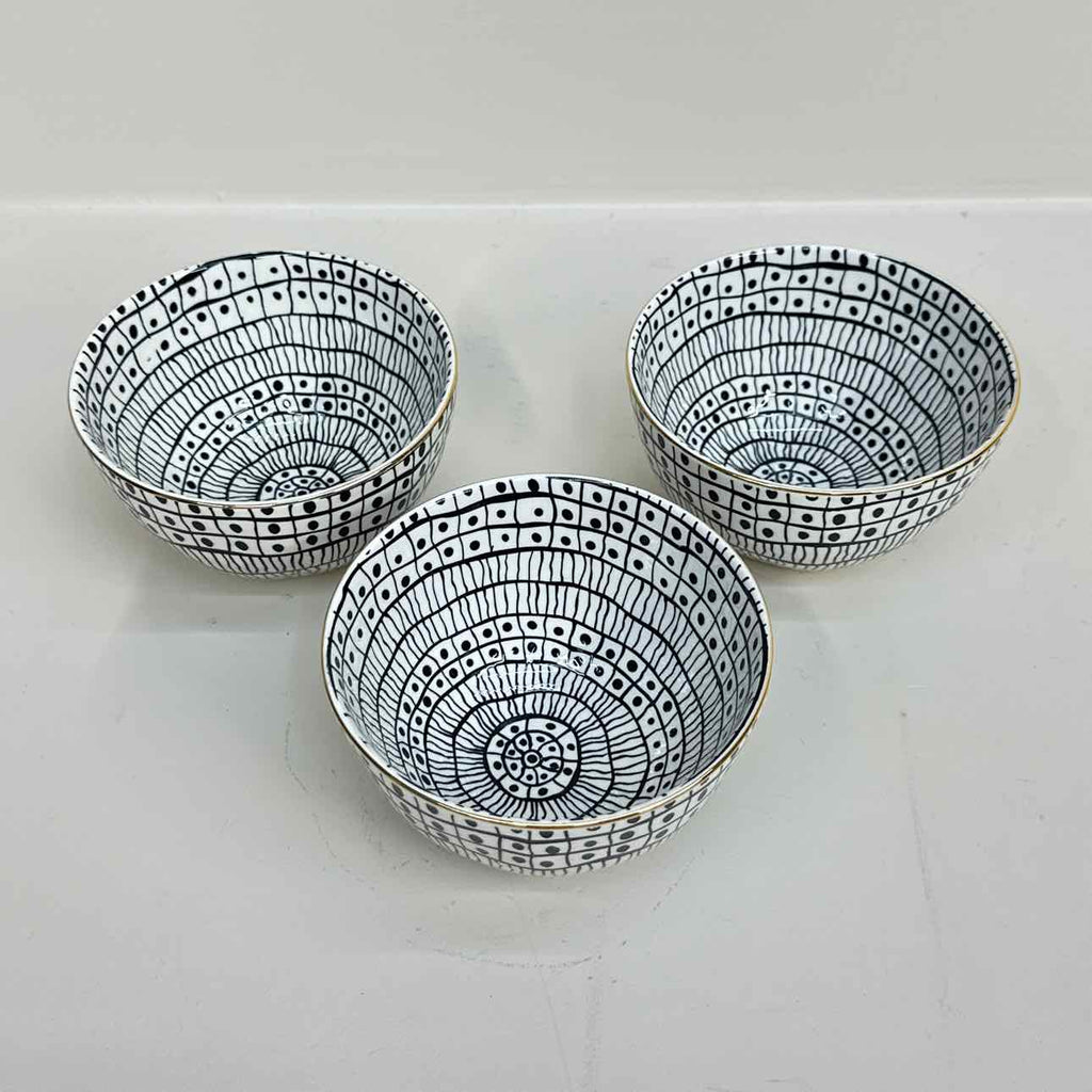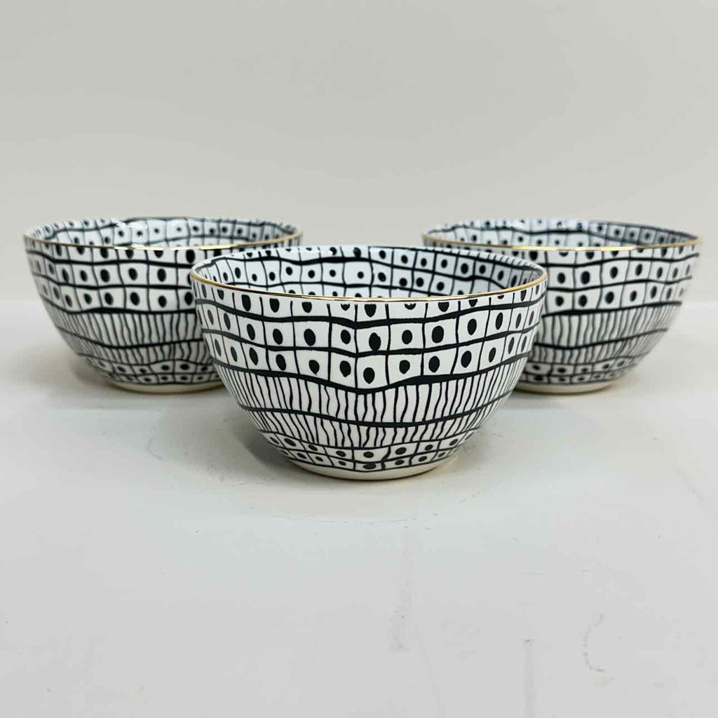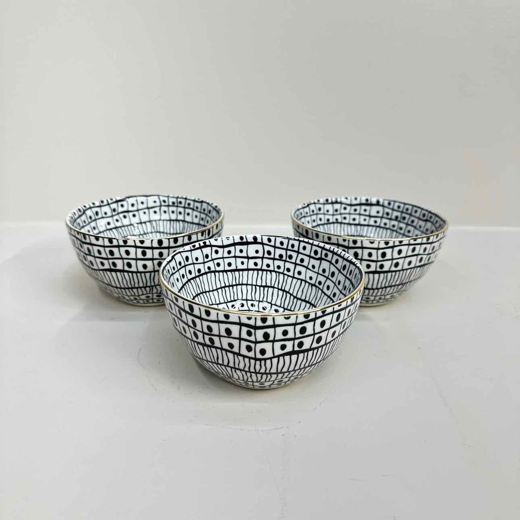 Set of 3 Black & White Bowls w/ Gold Trim - 5" Wide