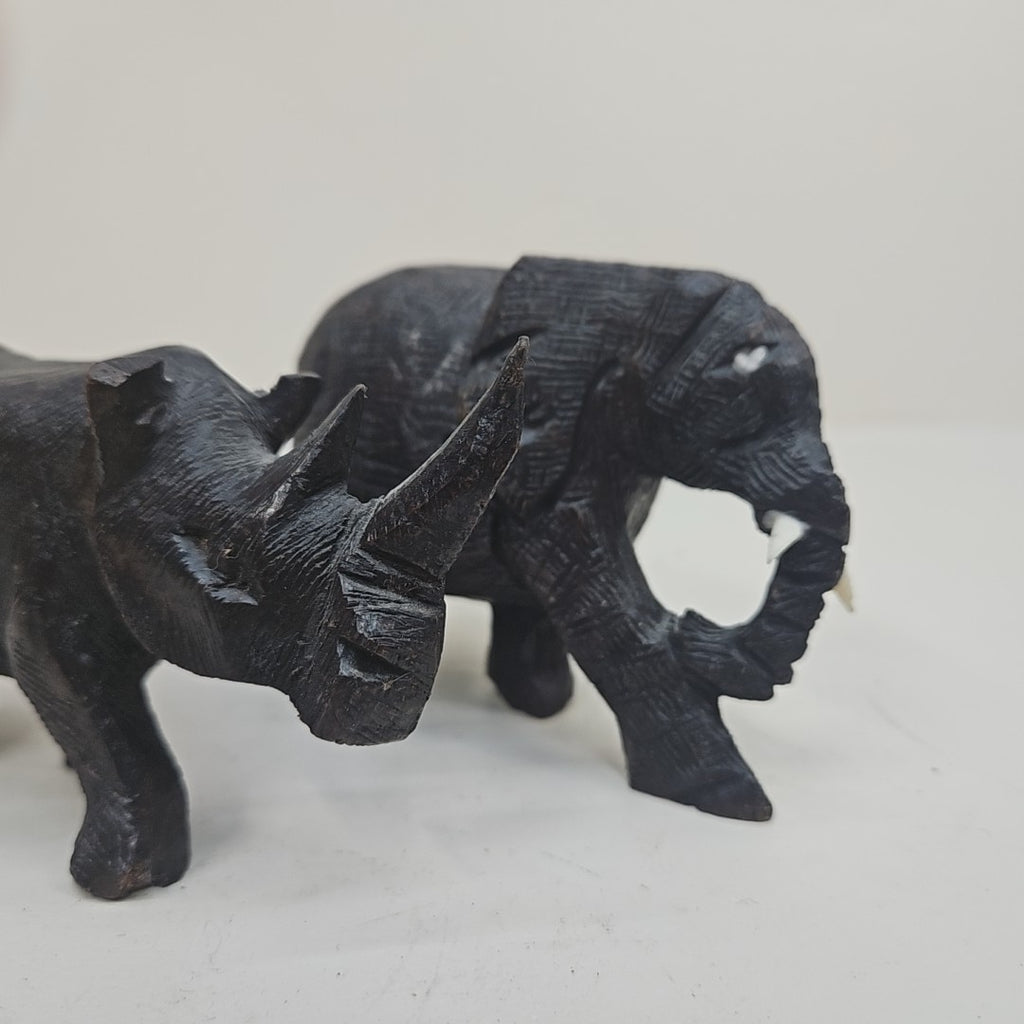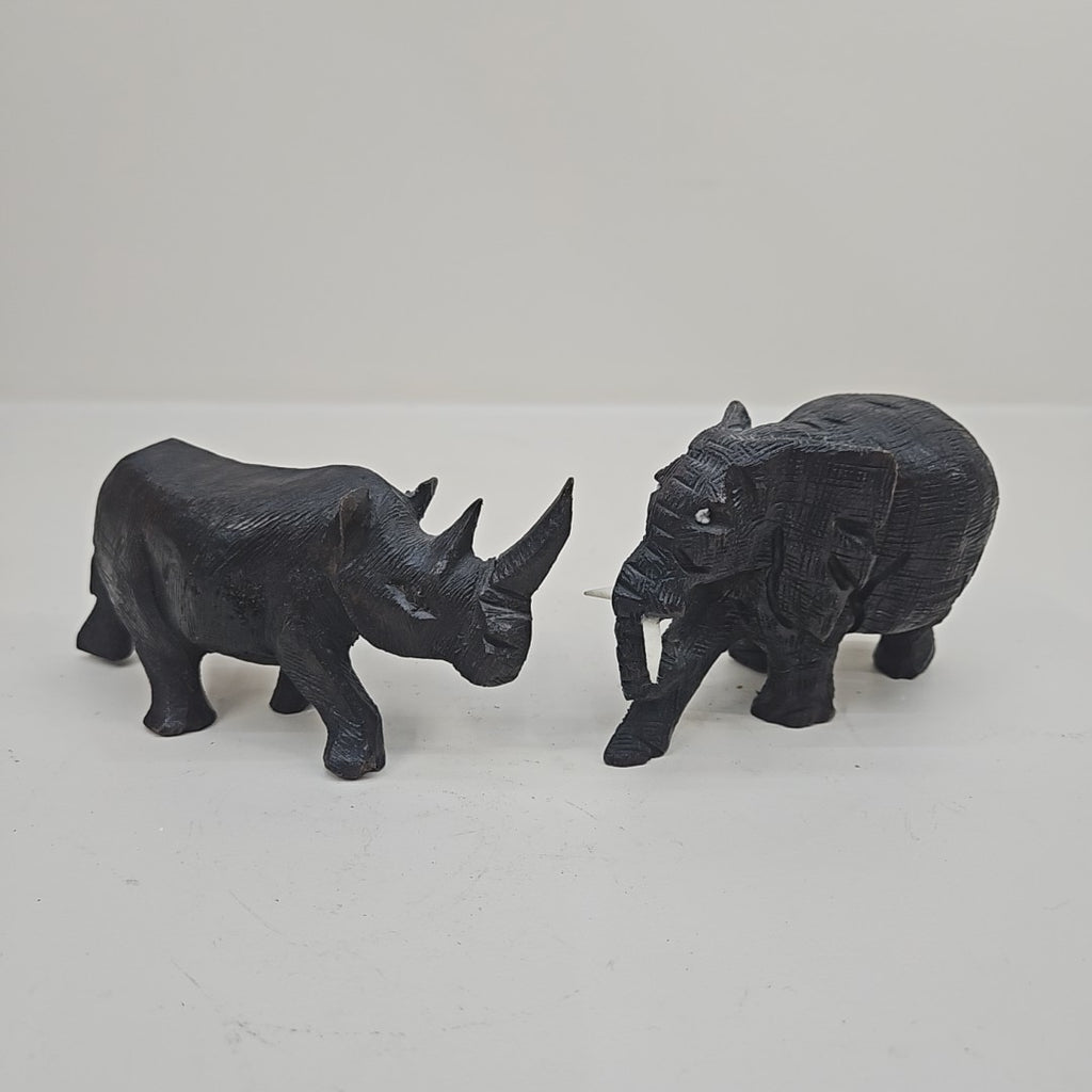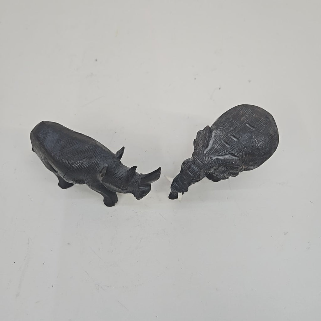 Set of 2 Carved Safari Animals - Elephant & Rhino - 5" Long Each
