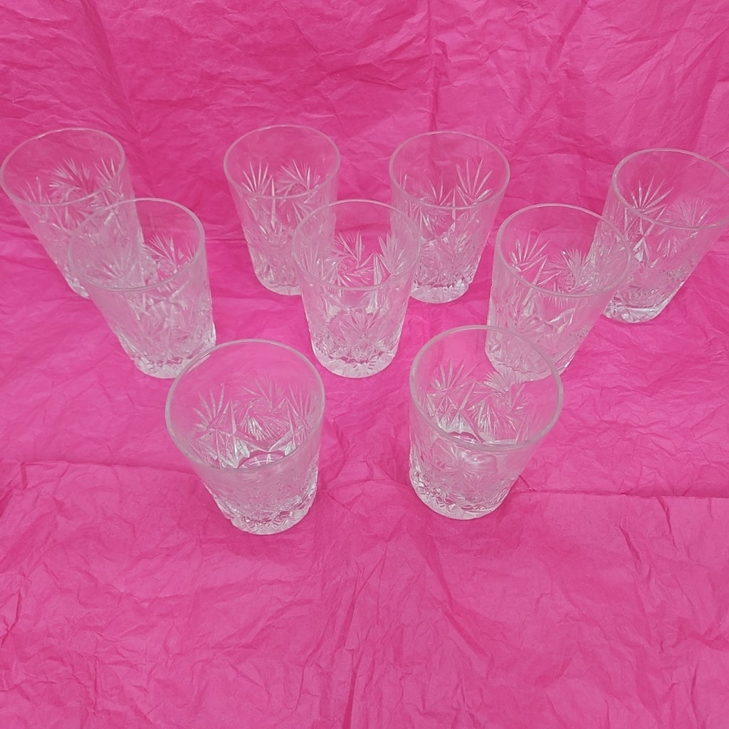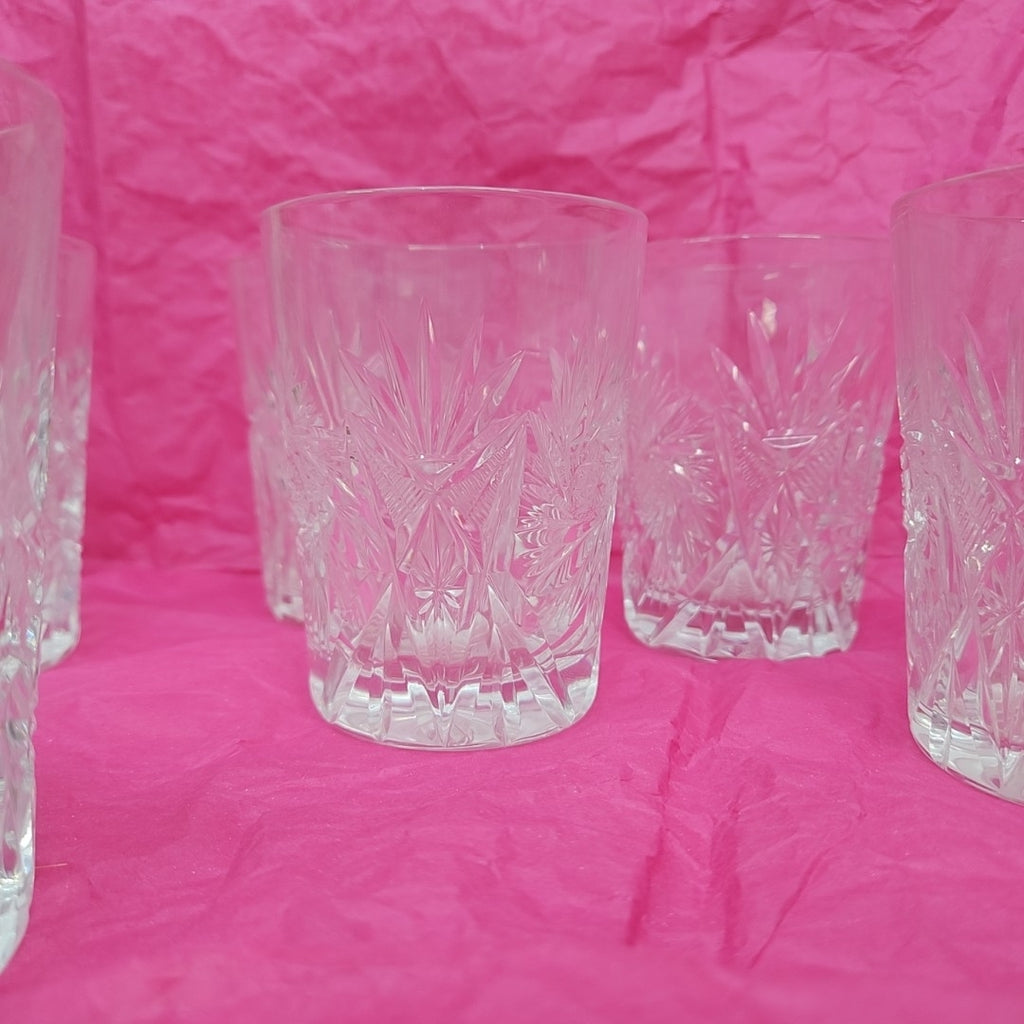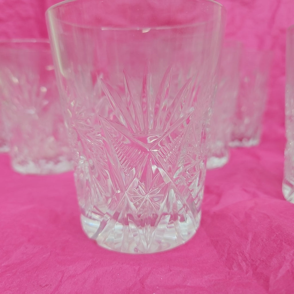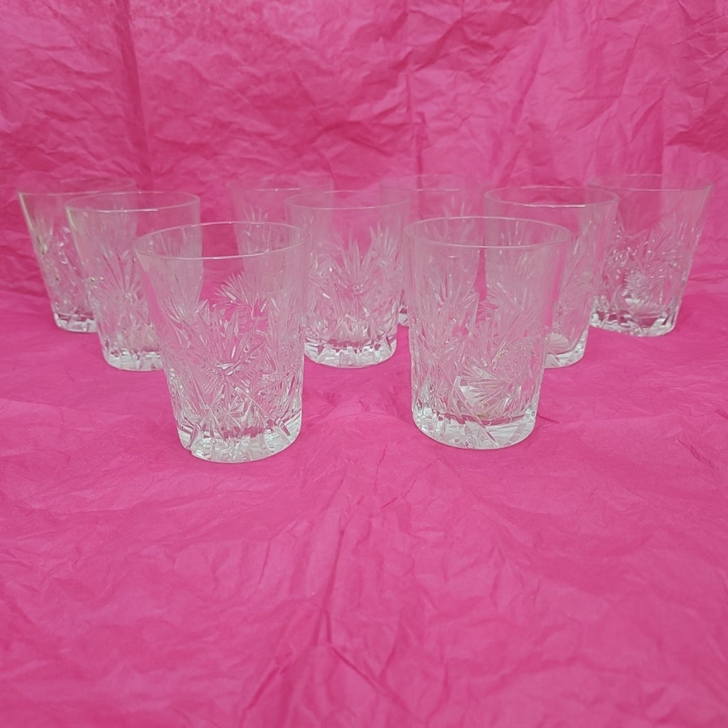 Set of 9 American Brilliant Cut Crystal Whiskey Glasses - 4" Tall