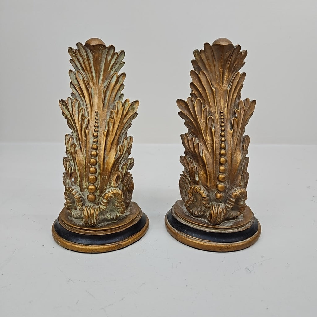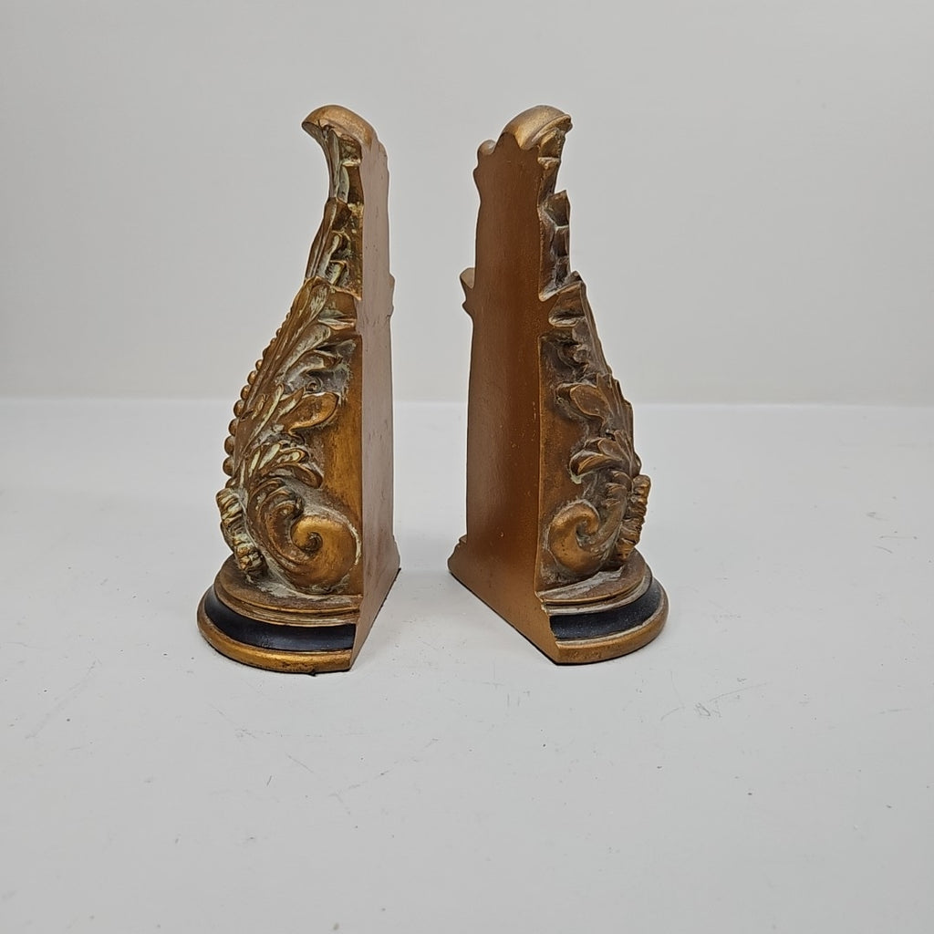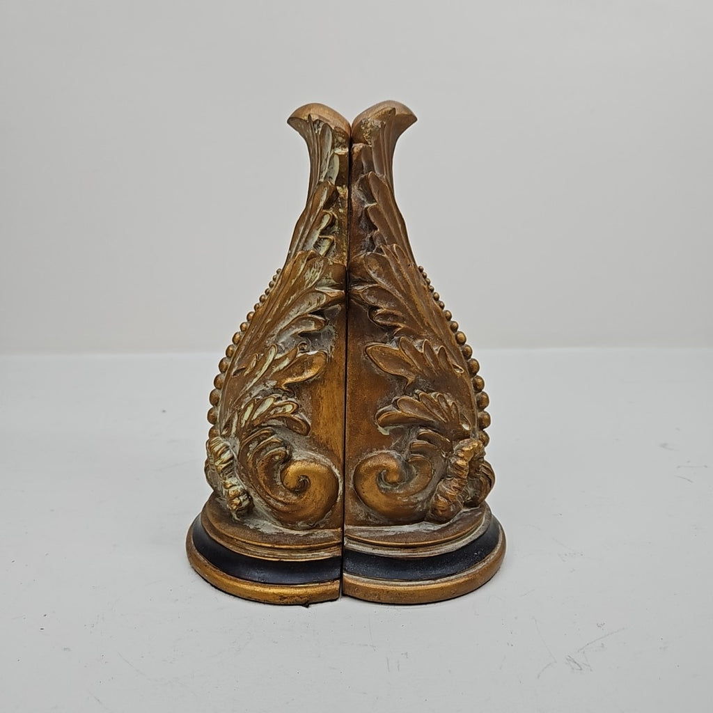 Set of 2 Ornate Gold Bookends - 8" Tall