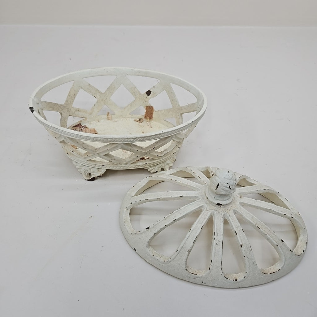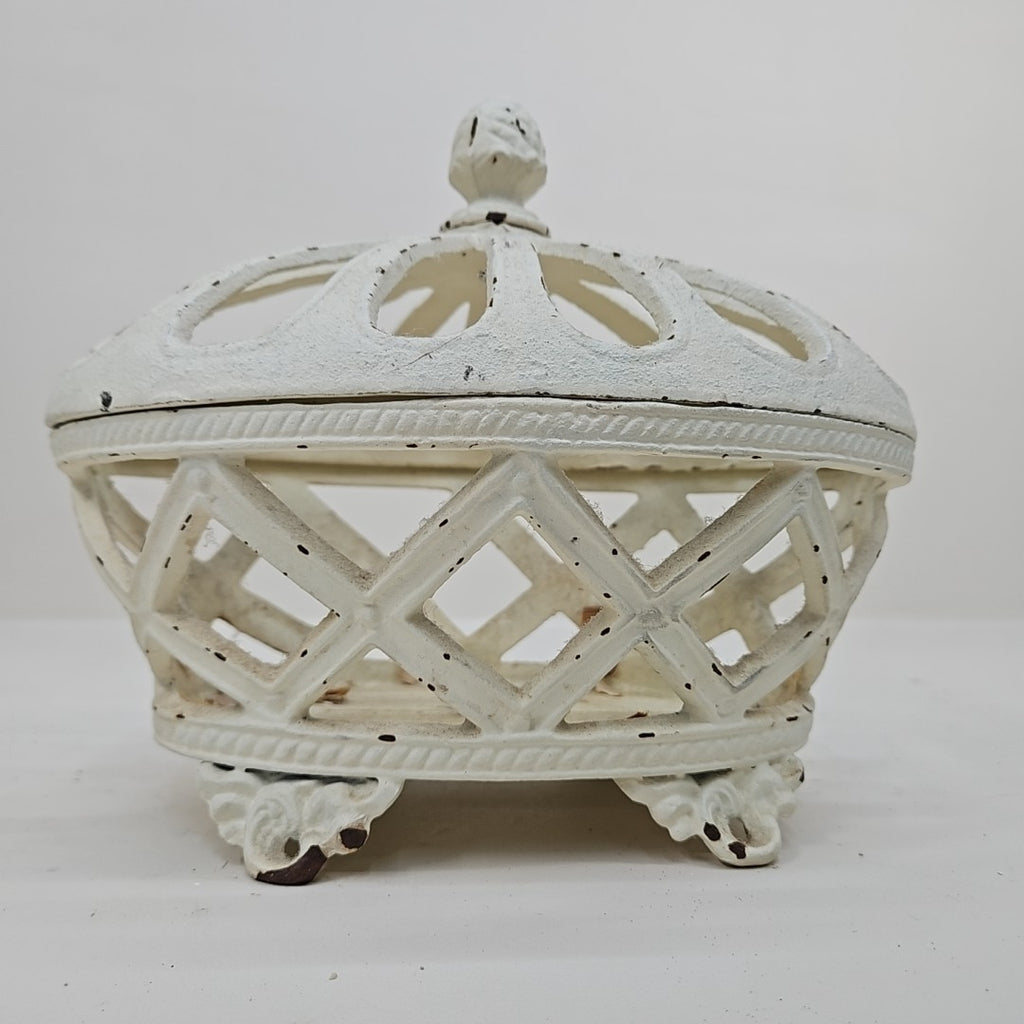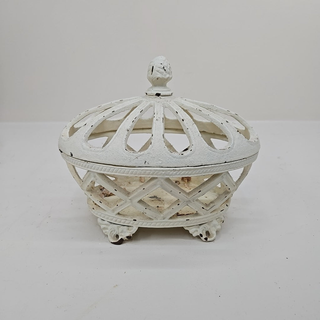 White Cast Iron Dish w/ Lid - 7.5" Tall x 9" Wide