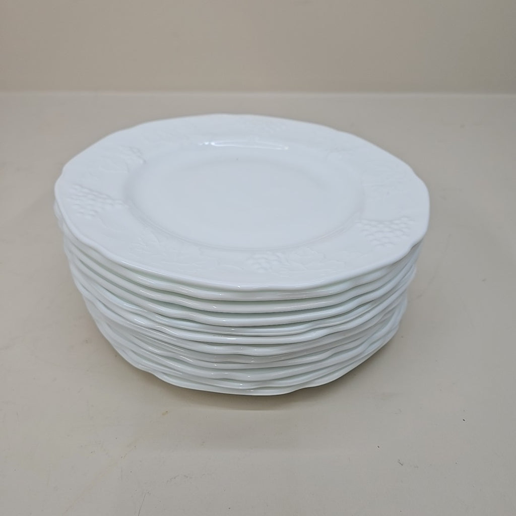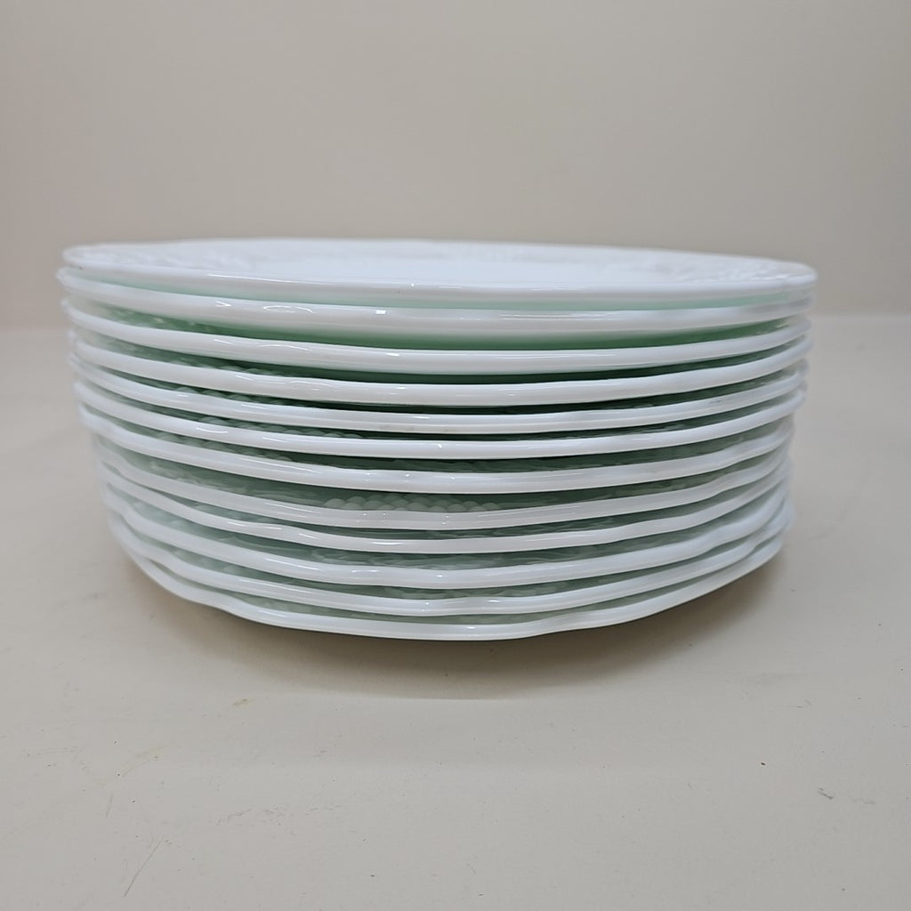 Set of 12 Milk Glass " Colony Harvest " Dinner Plates - 9.5" Across