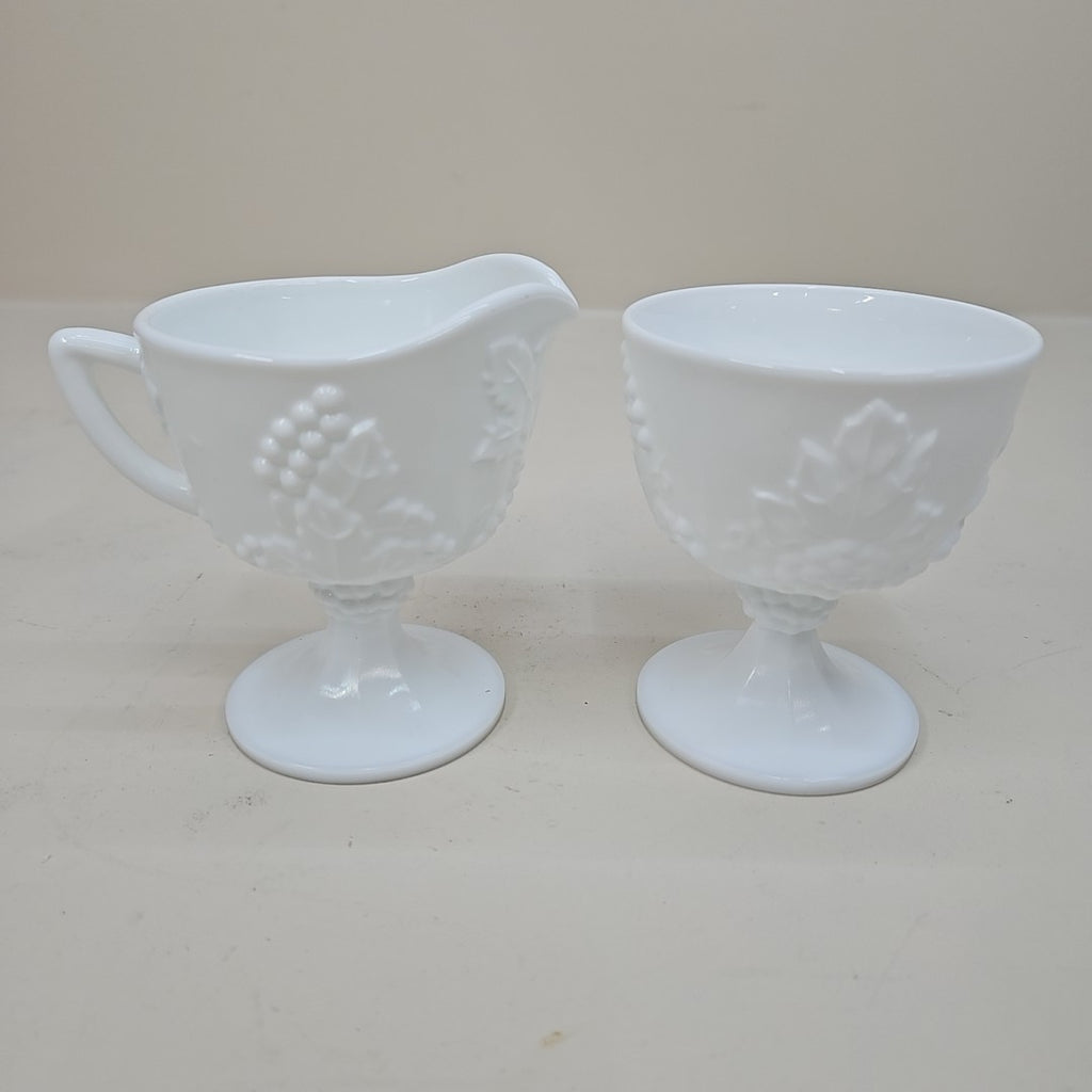 Milk Glass " Colony Harvest " Cream & Sugar Set -