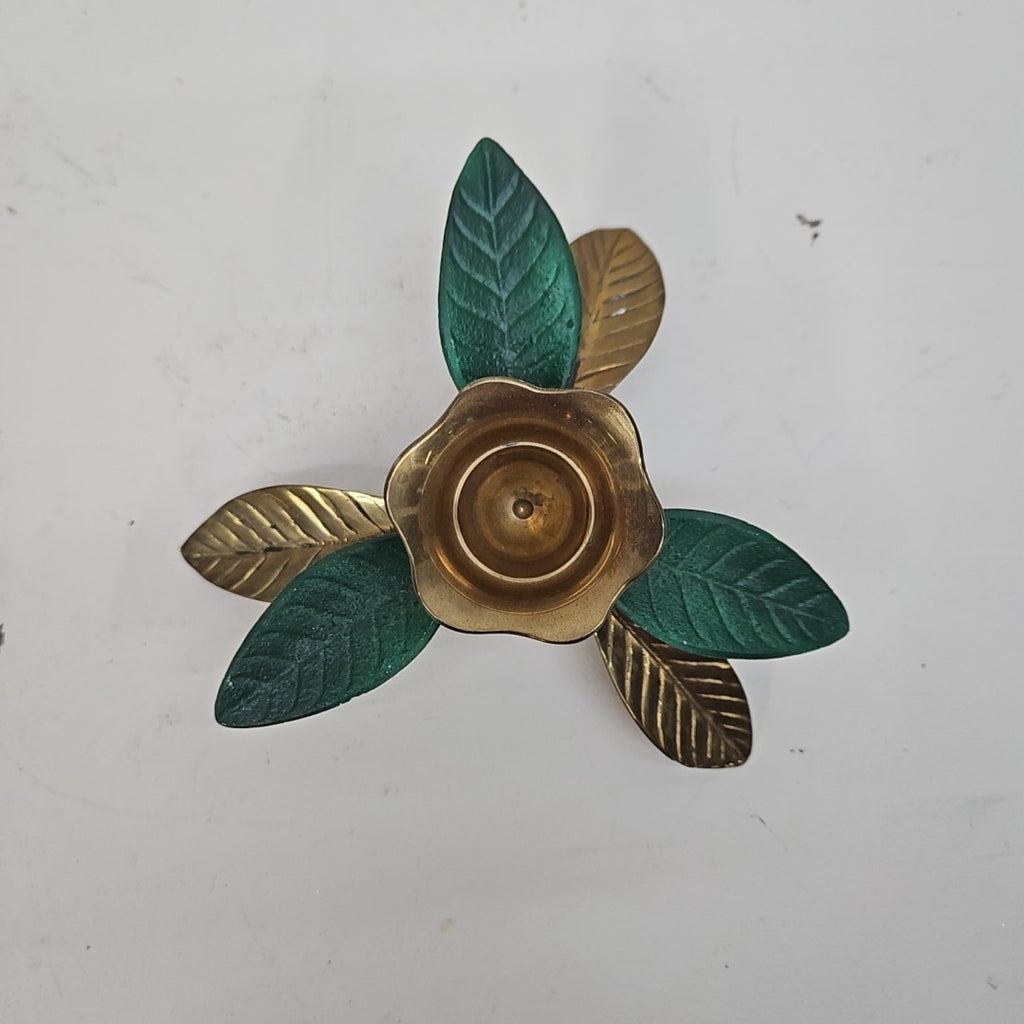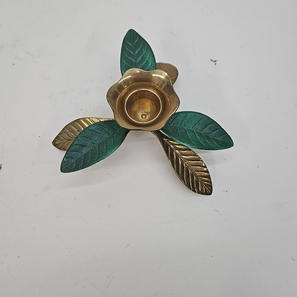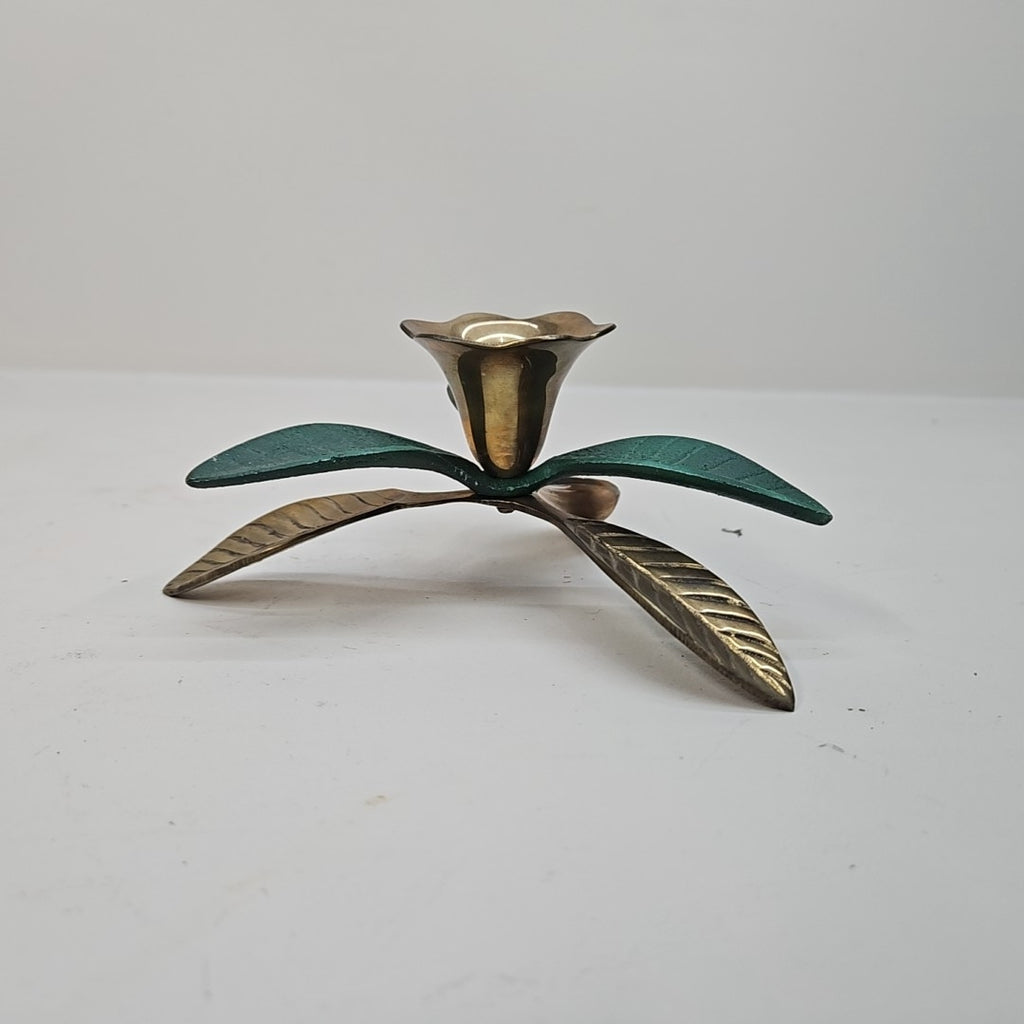 Brass Flower Style Candle Holder - 2.5" Tall x 6" Wide