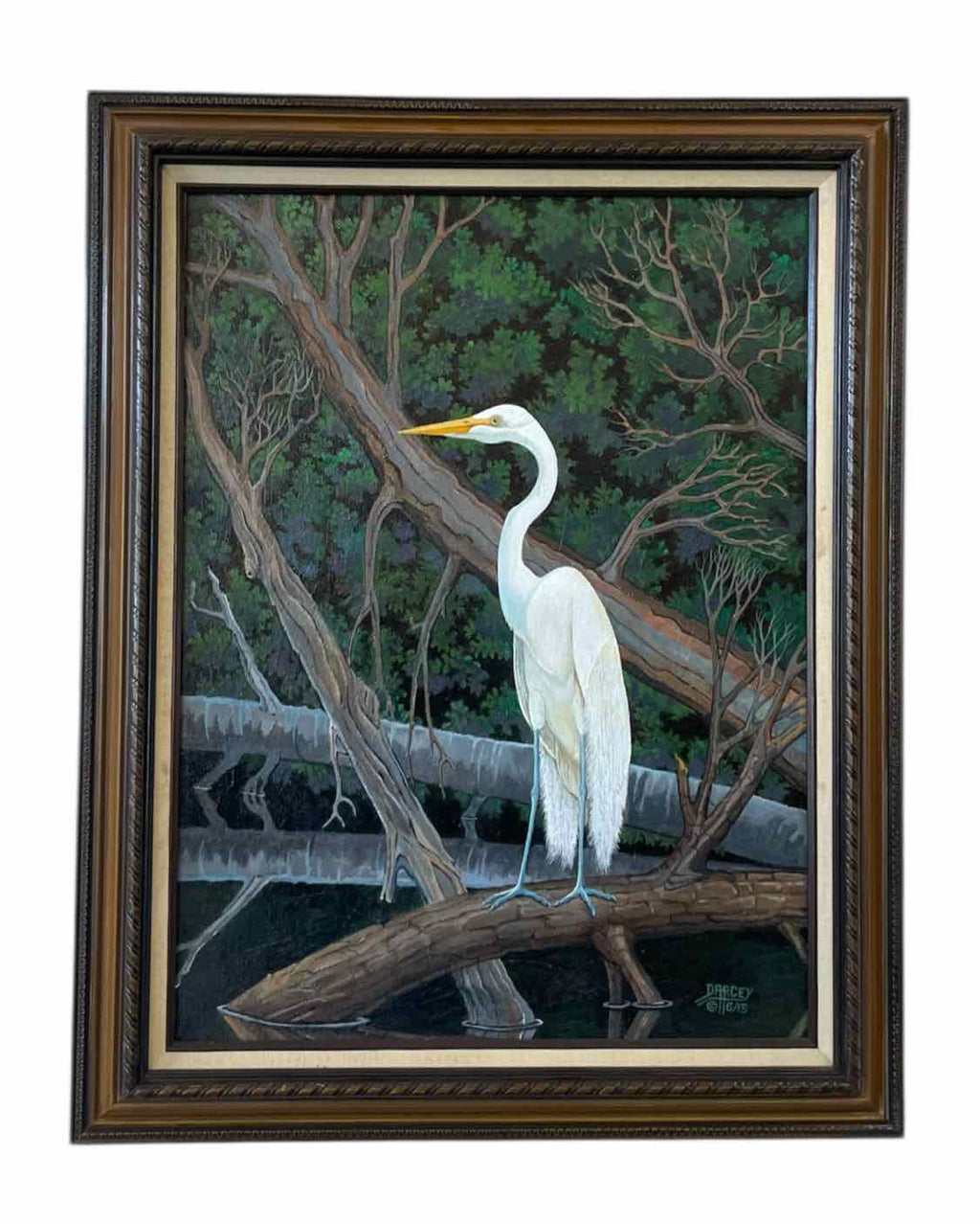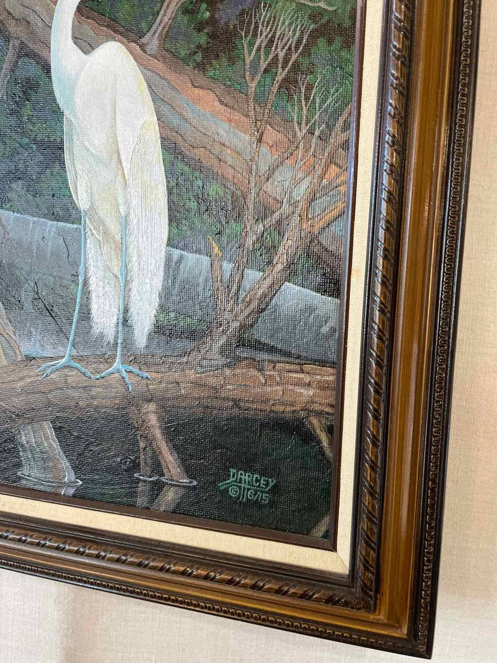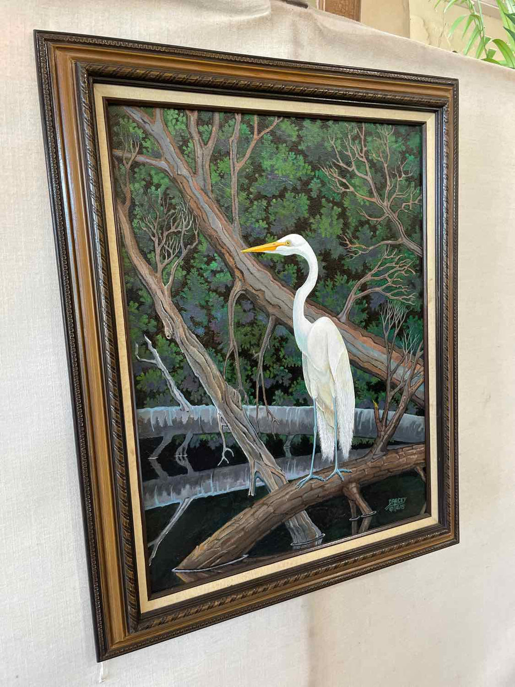 Bronze Framed Art of Egret - Signed Darcey - 30" x 23"