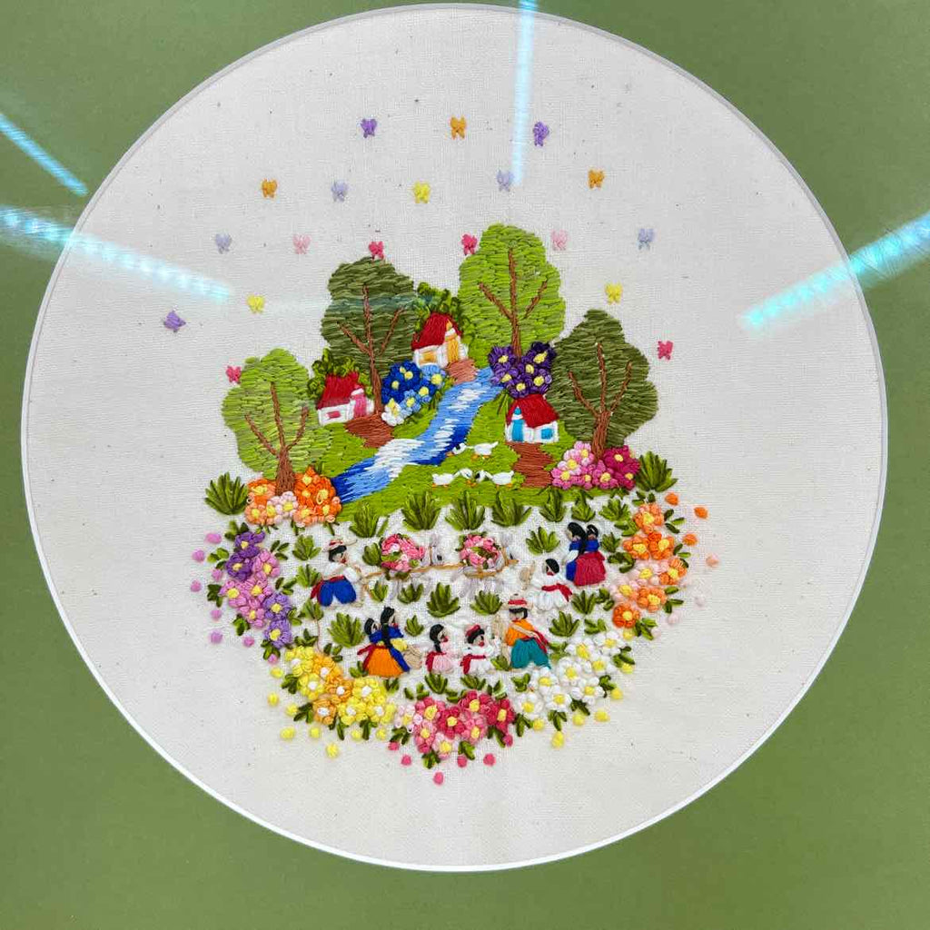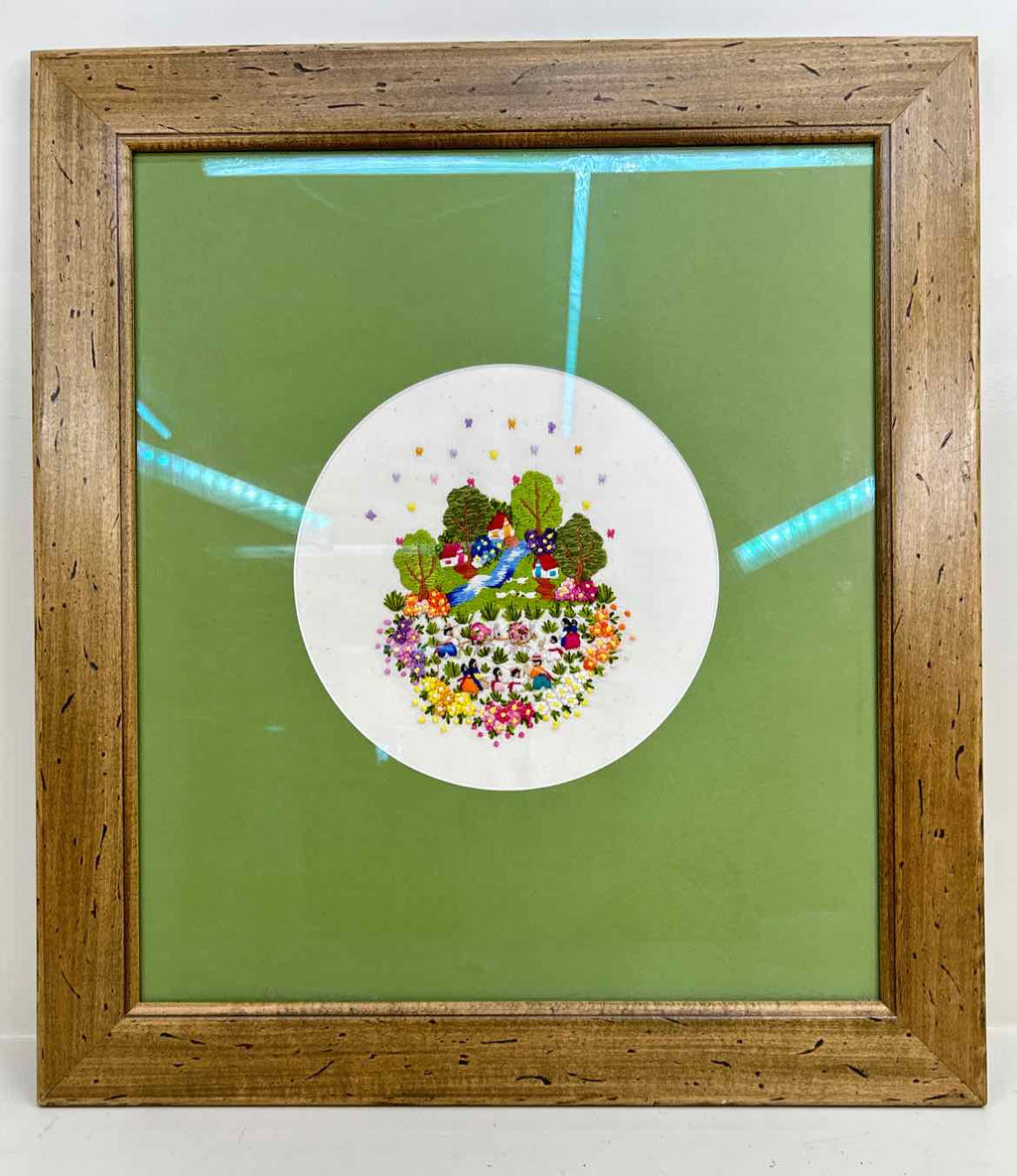 Wood Framed Needlepoint Art w/ Green Mat - 26" Tall x 23" Wide