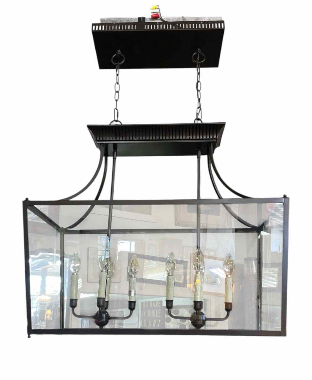 Modern Black Metal & Glass Chandelier w/ 8 Lights - 41" Tall x 30" Wide x 15" Deep