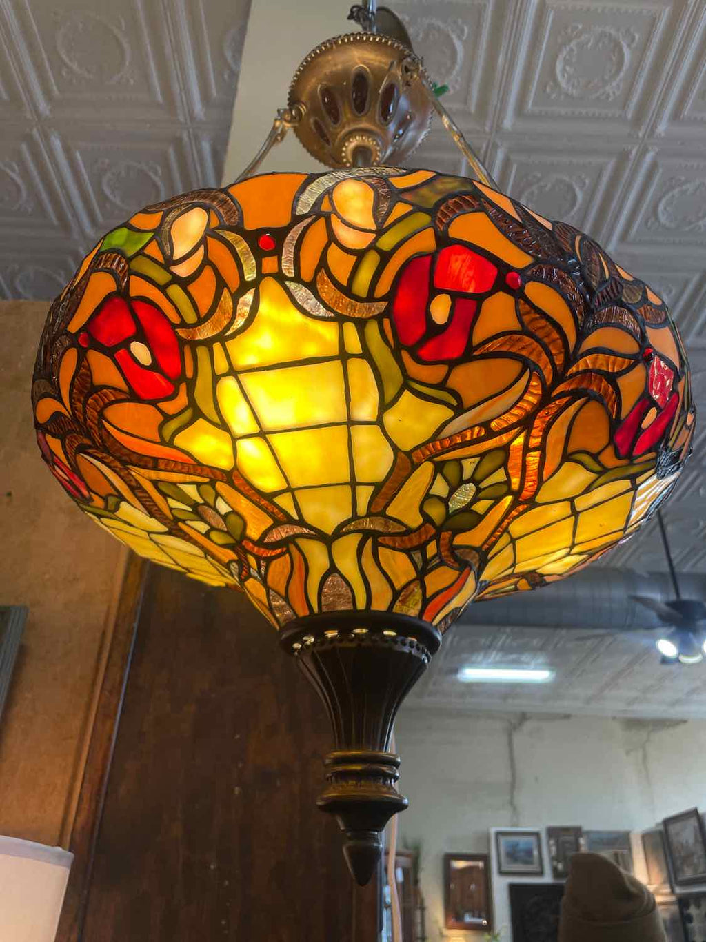 Vintage Tiffany Style Floral Chandelier - 30" Tall