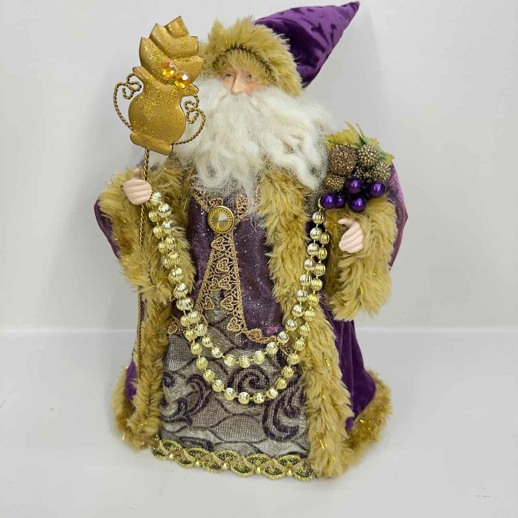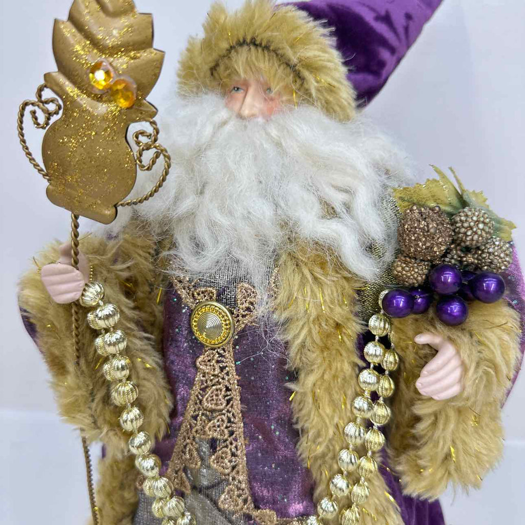 Vintage Santa Figurine w/ Patchwork Robe - 13.5" Tall