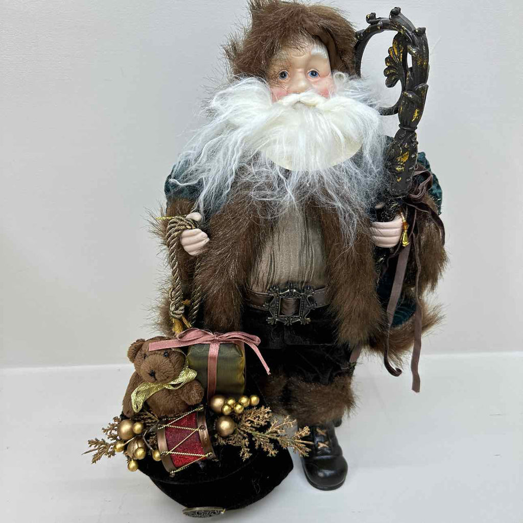Vintage Santa w/ Brown & Green Fur Coat Figurine- 16" Tall