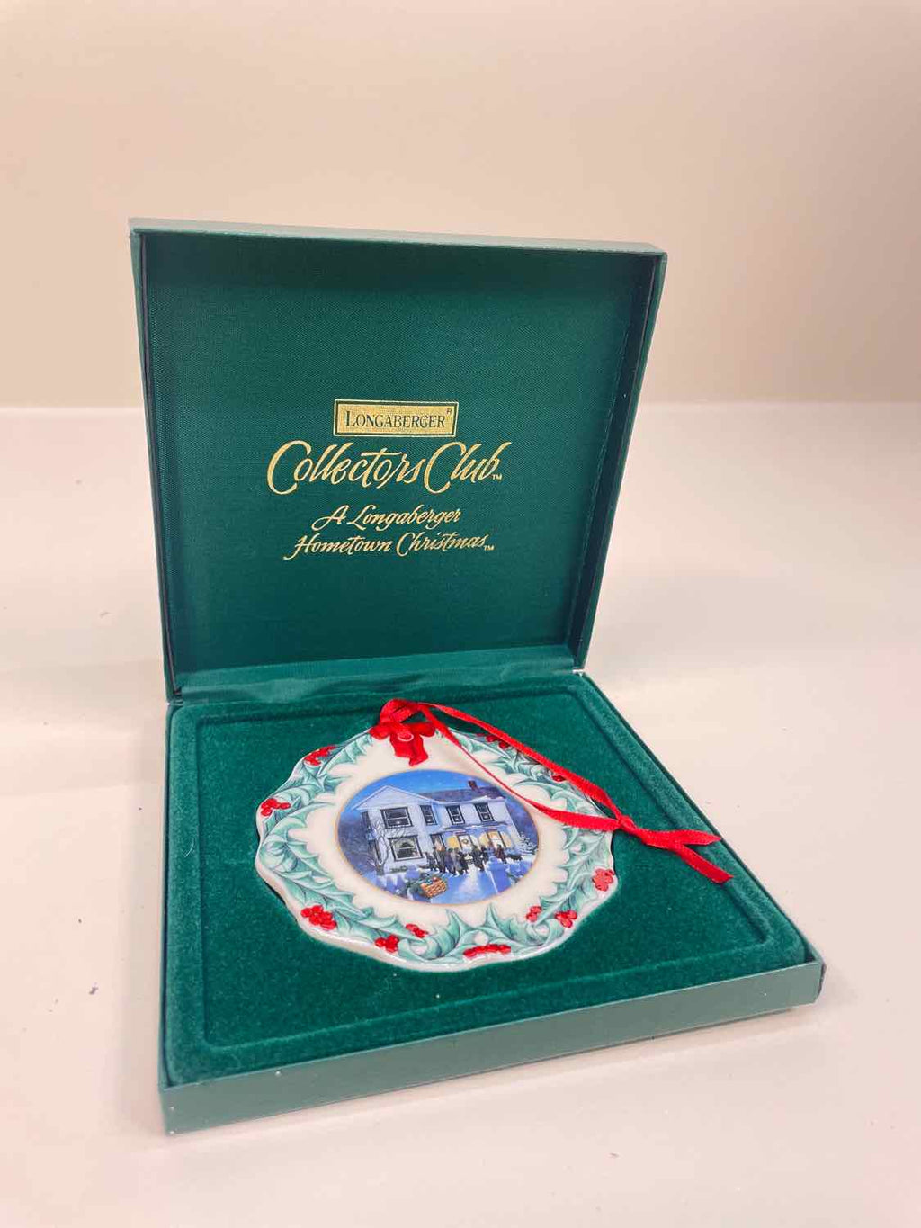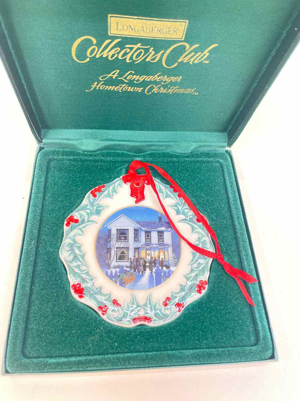 Vintage Longaberger 1997 Christmas Ornament - "Shopping on Mainstreet" - In Green Collectors Case