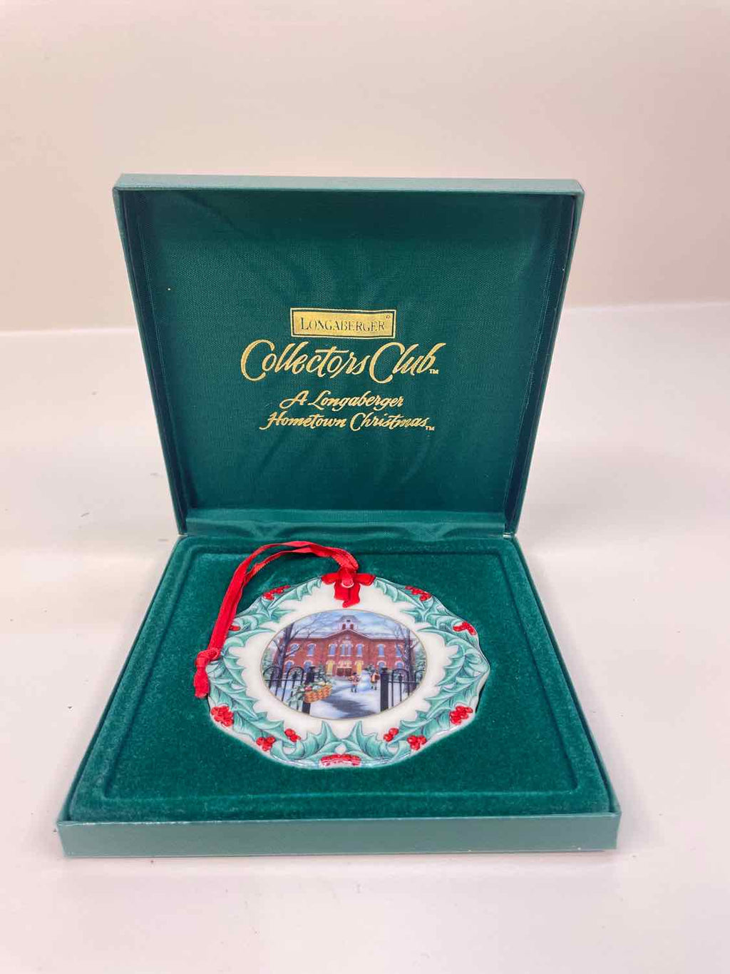 Vintage Longaberger 1996 Christmas Ornament - "Shopping on Mainstreet" - In Green Collectors Case