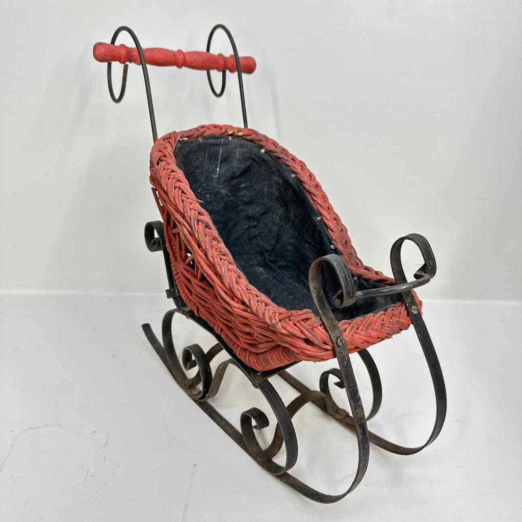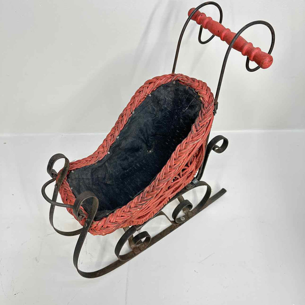 Red Wicker & Metal Sleigh - 12" Tall x 12" Wide