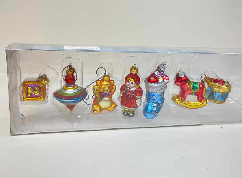 Set of 7 Vintage Small Christmas Ornaments - Dept 56 - Missing 1 from complete set of 8