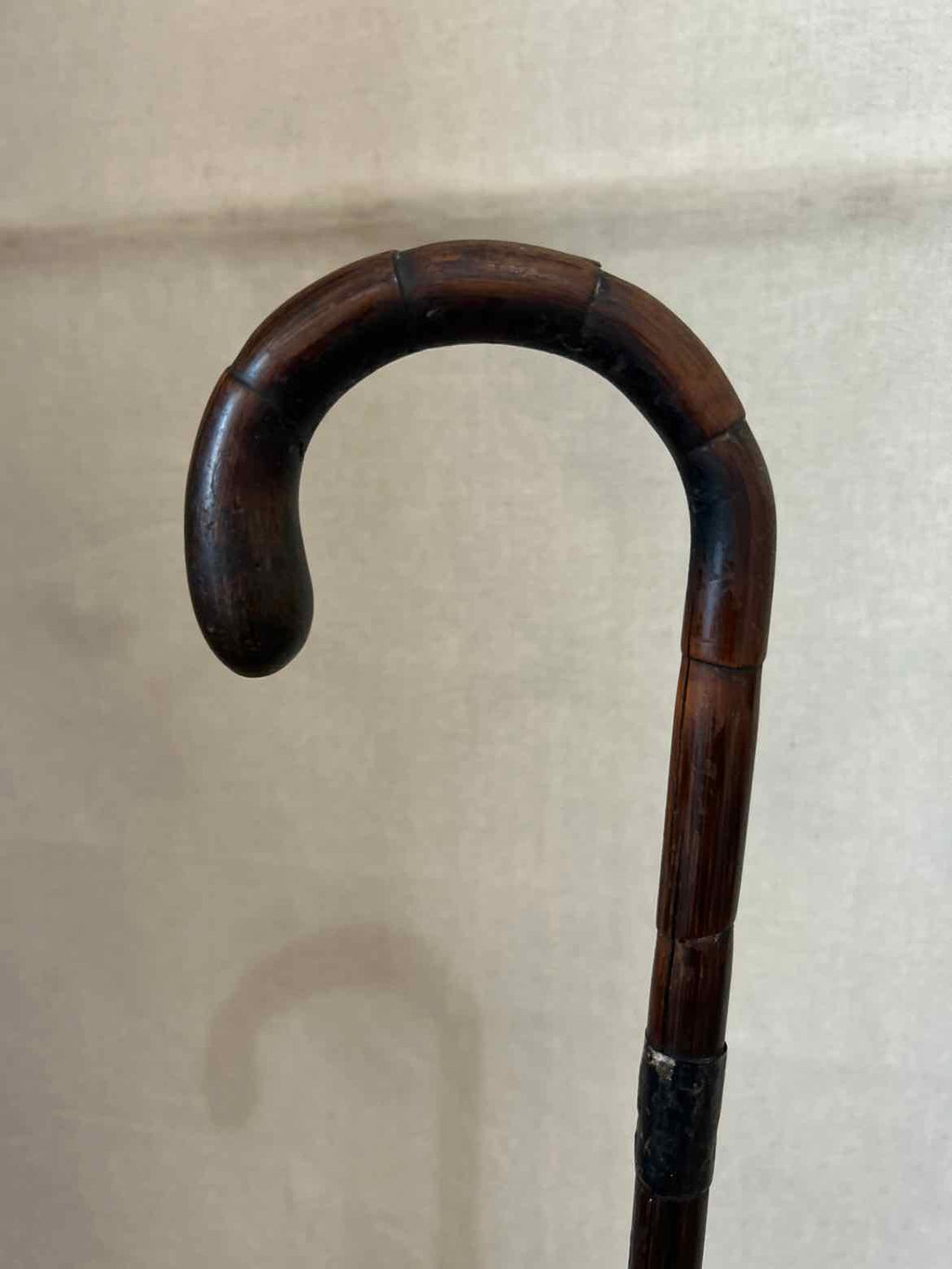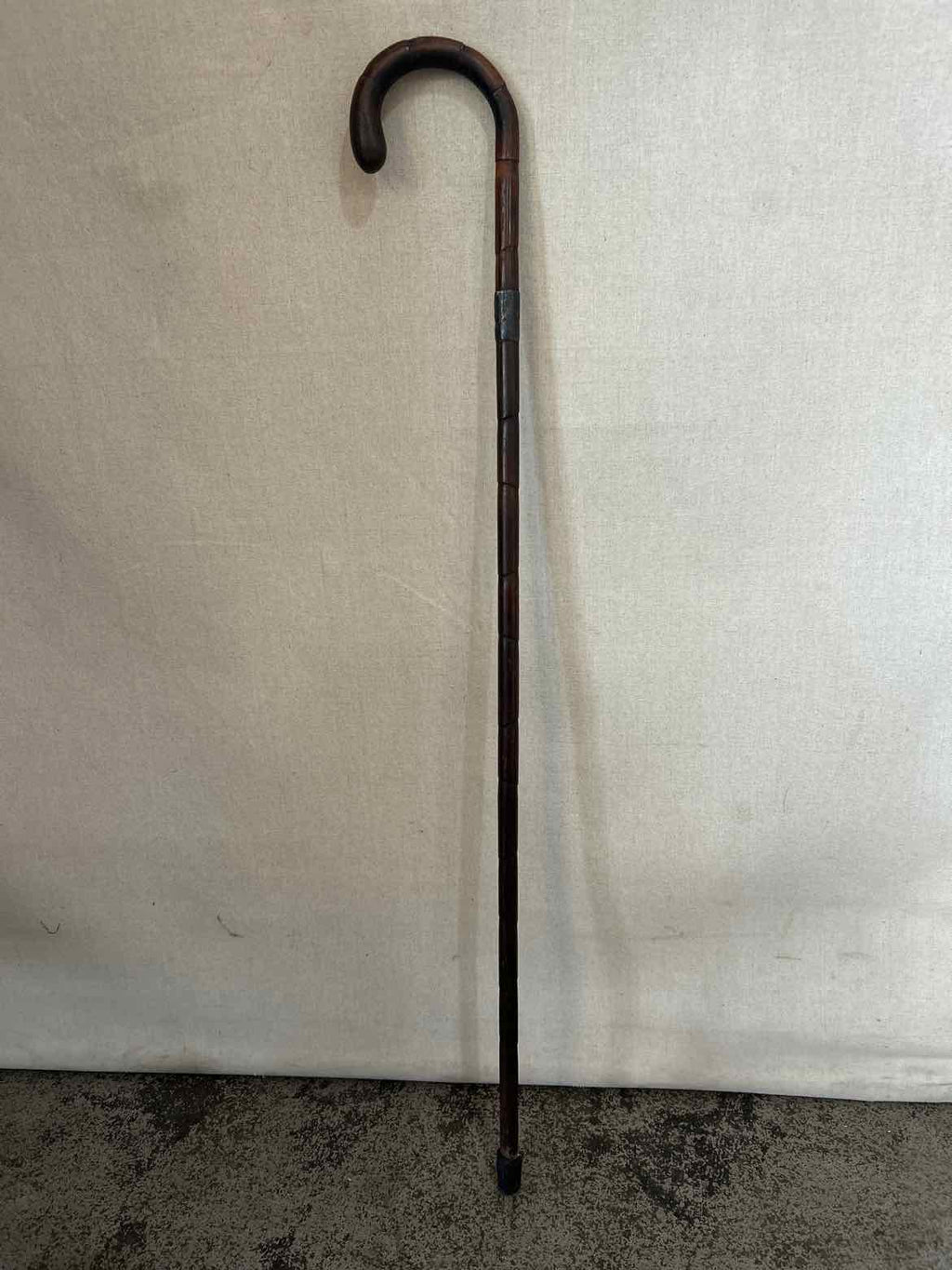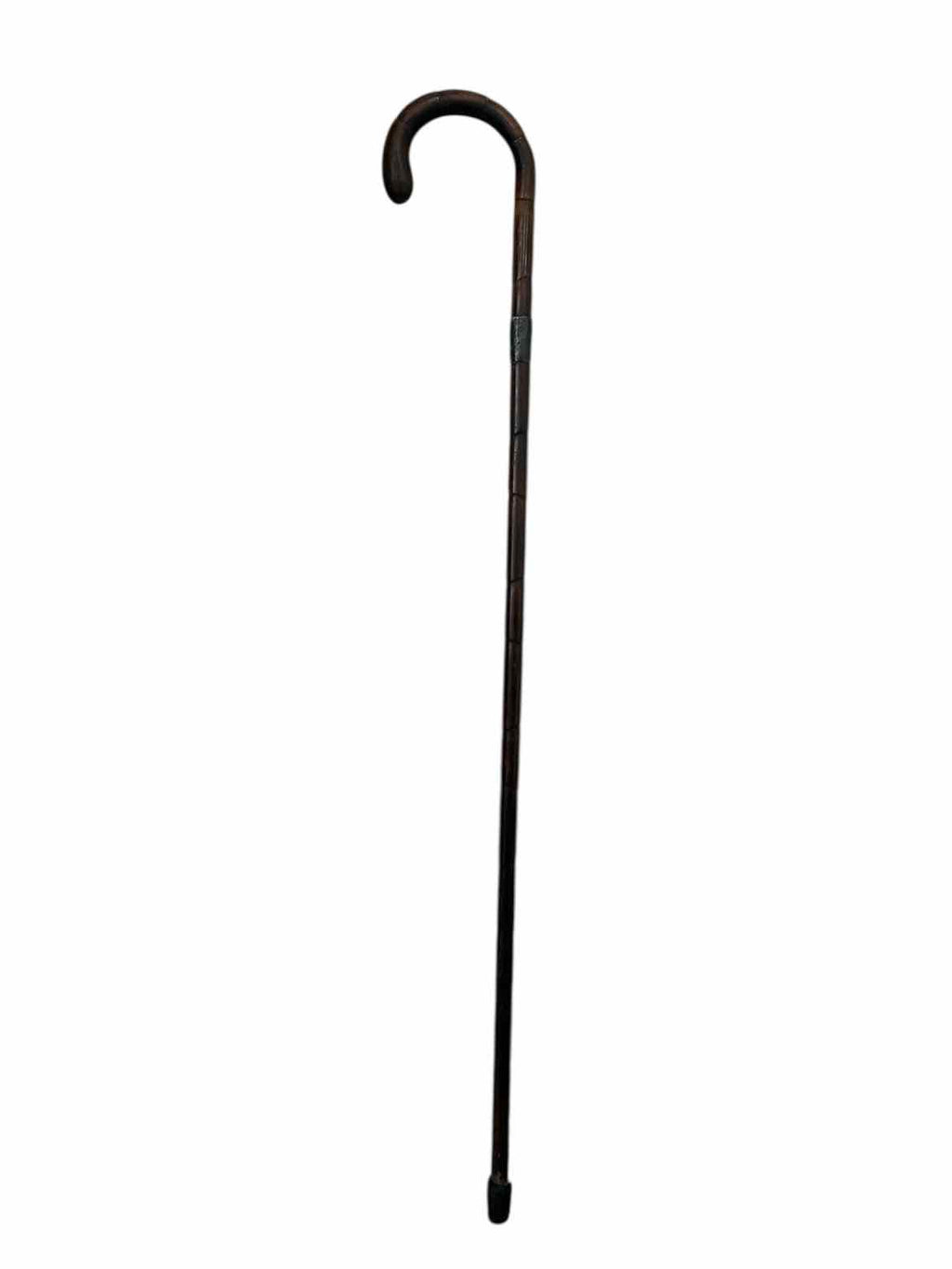 Round Handle Solid Wood Cane - Dark Finish, Metal Engraved Band - 34.5" Tall