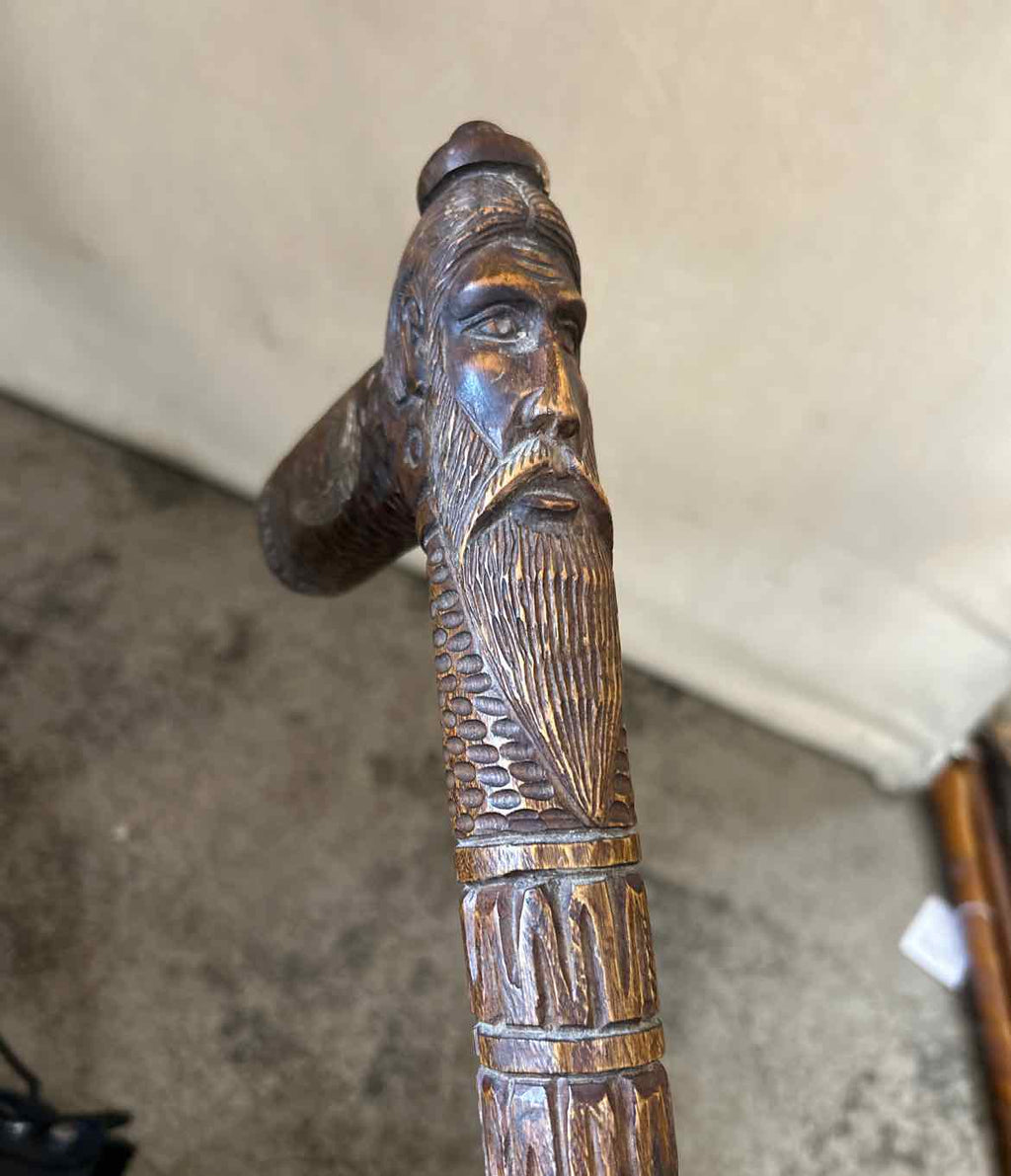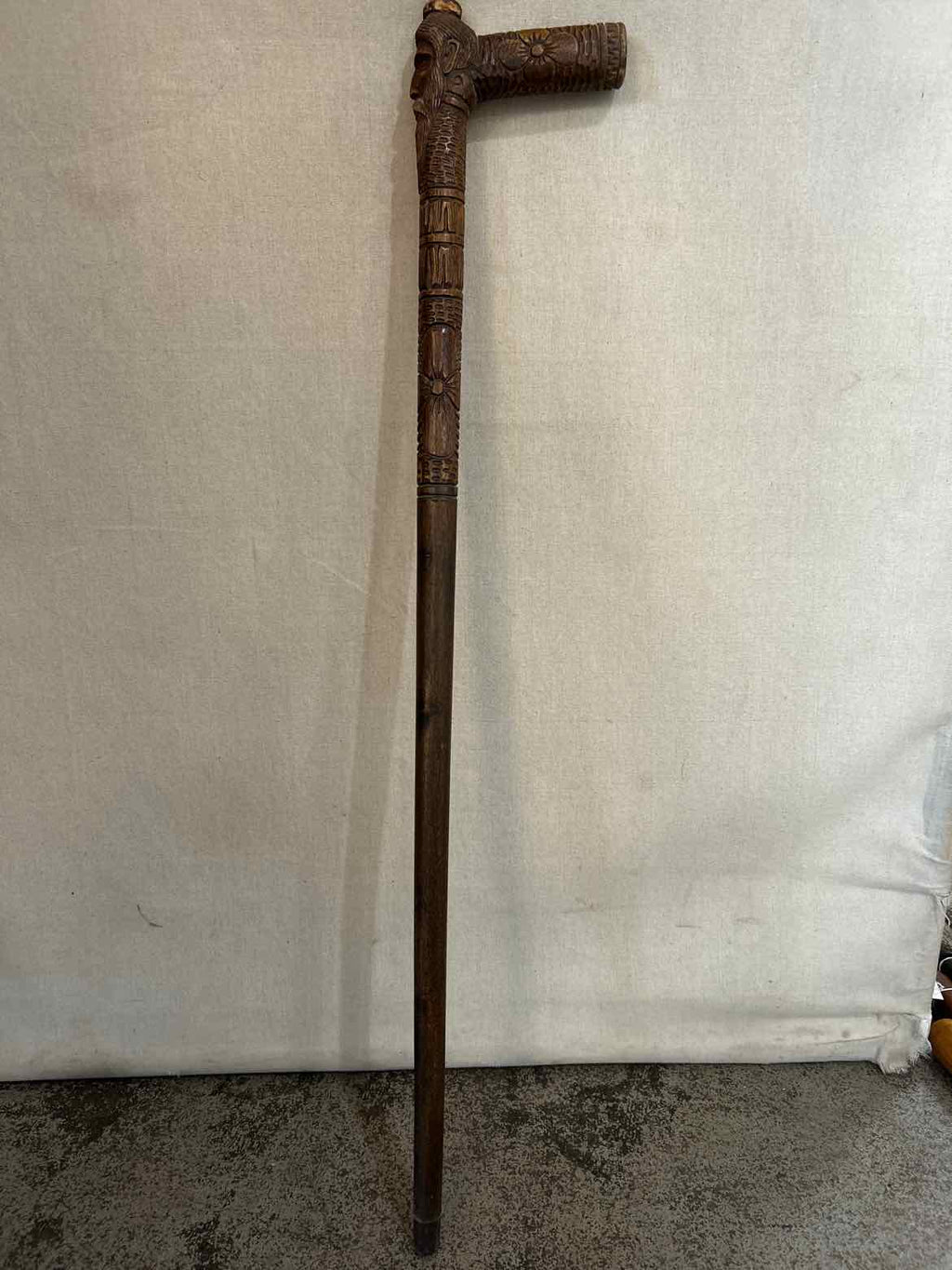 Solid Wood Ornately Carved Cane - 36.5" Tall