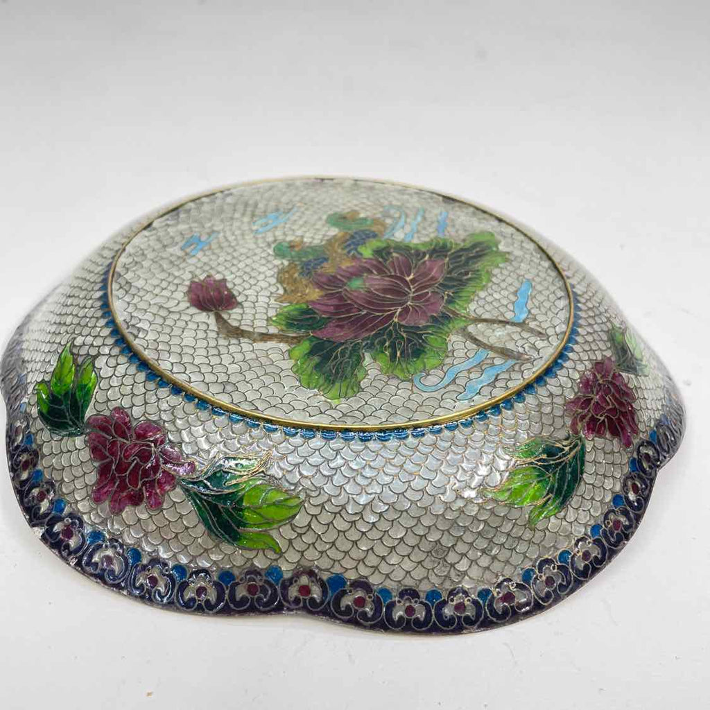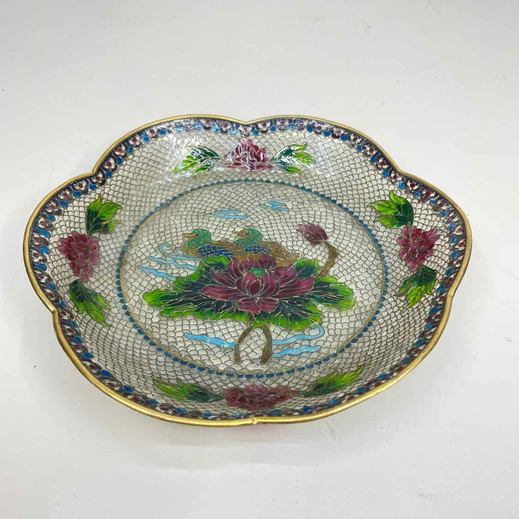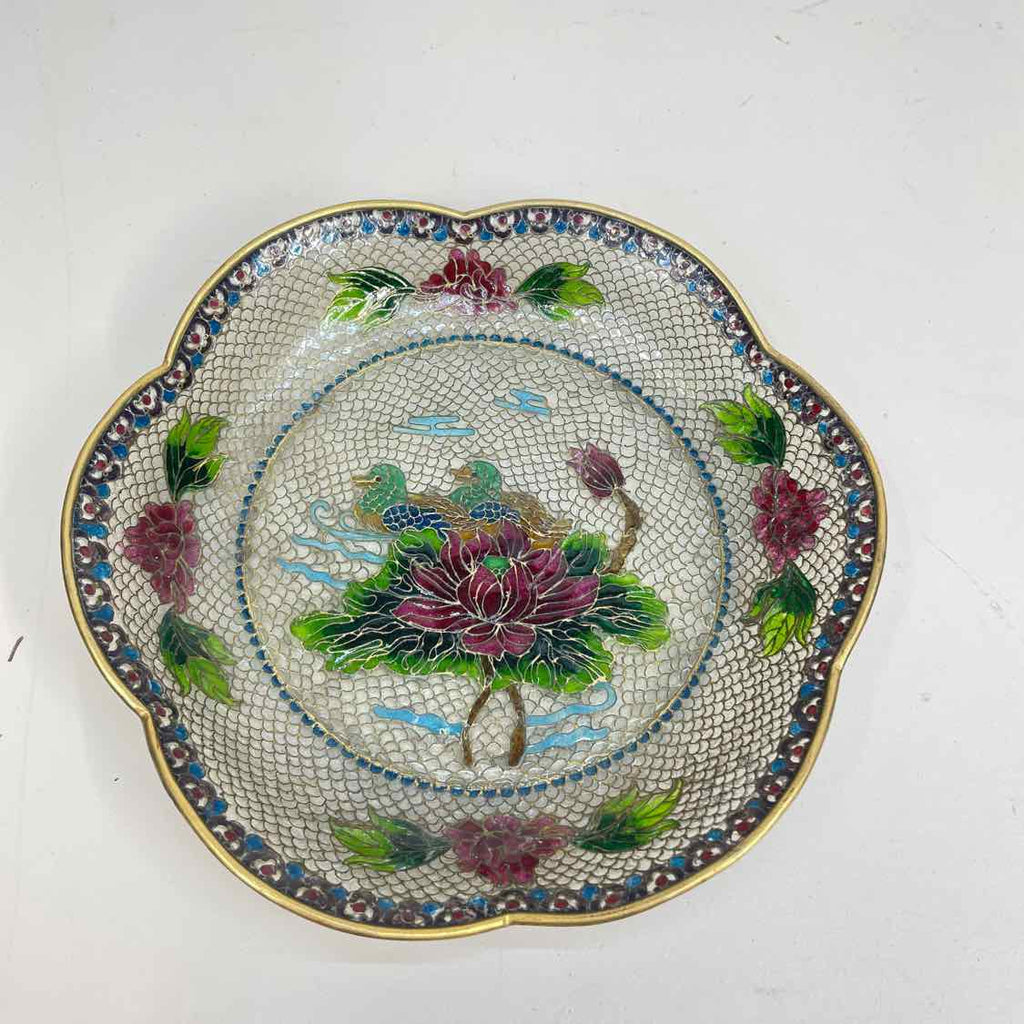 Vintage Plique A Jour Flat Dish with Birds - Priced For Condition, Has Small Cracks - Roughly 1" Tall x 7" Wide
