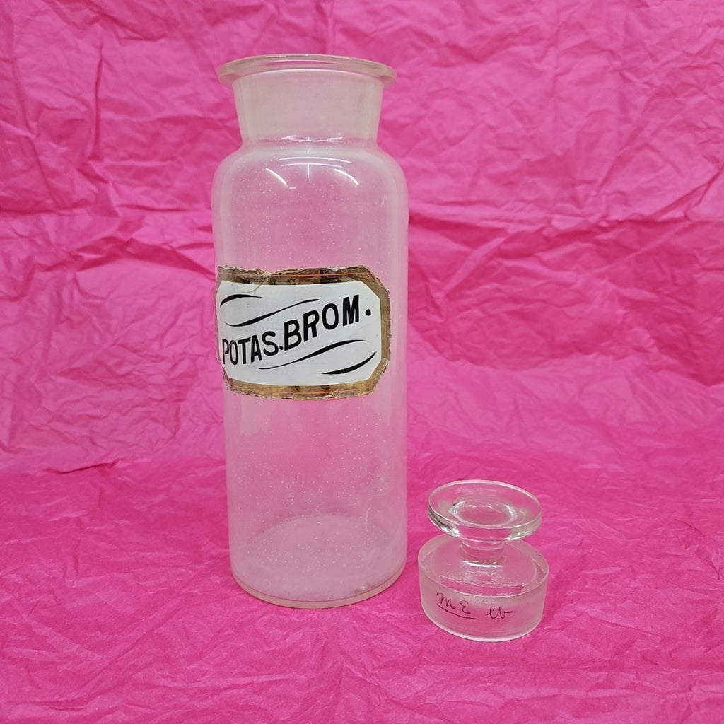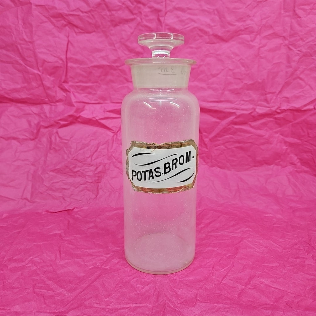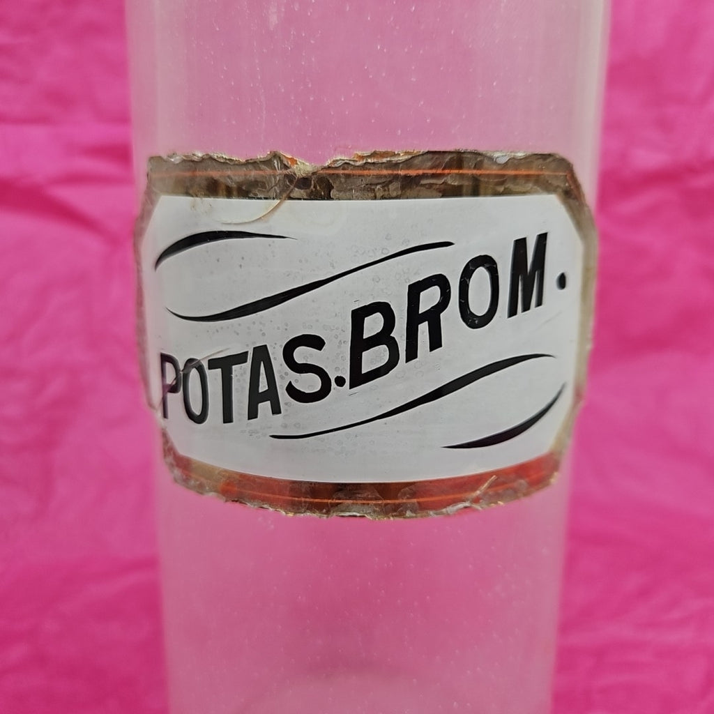 Antique Apothecary Jar with Label "Potas.Brom" - Pharmacy Bottle with Stopper - Label Not Original to Bottle, has been transfered - 10" Tall