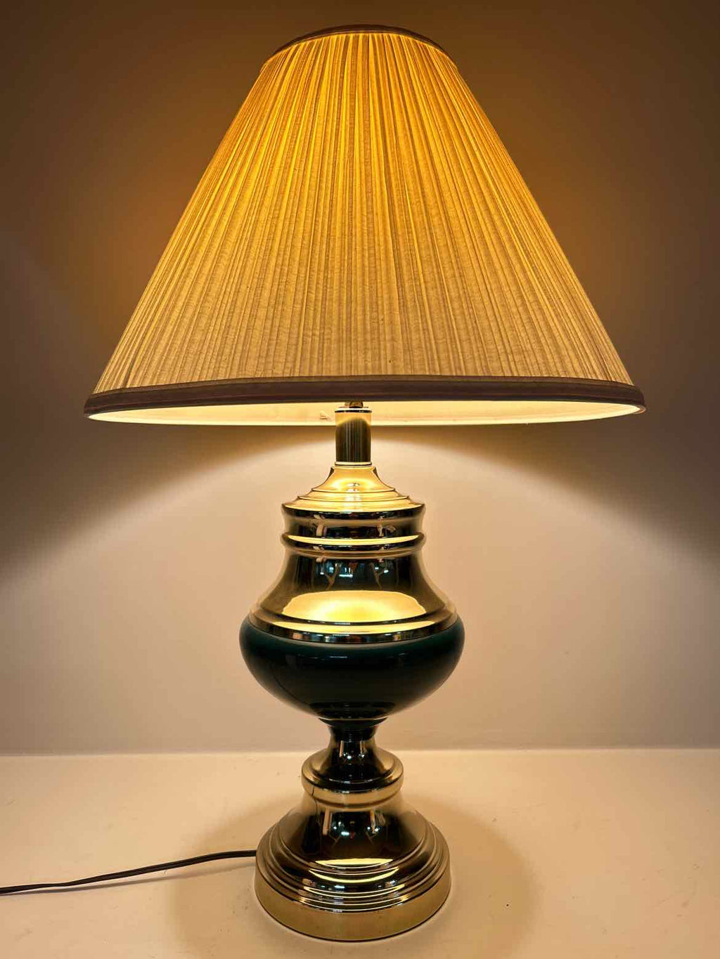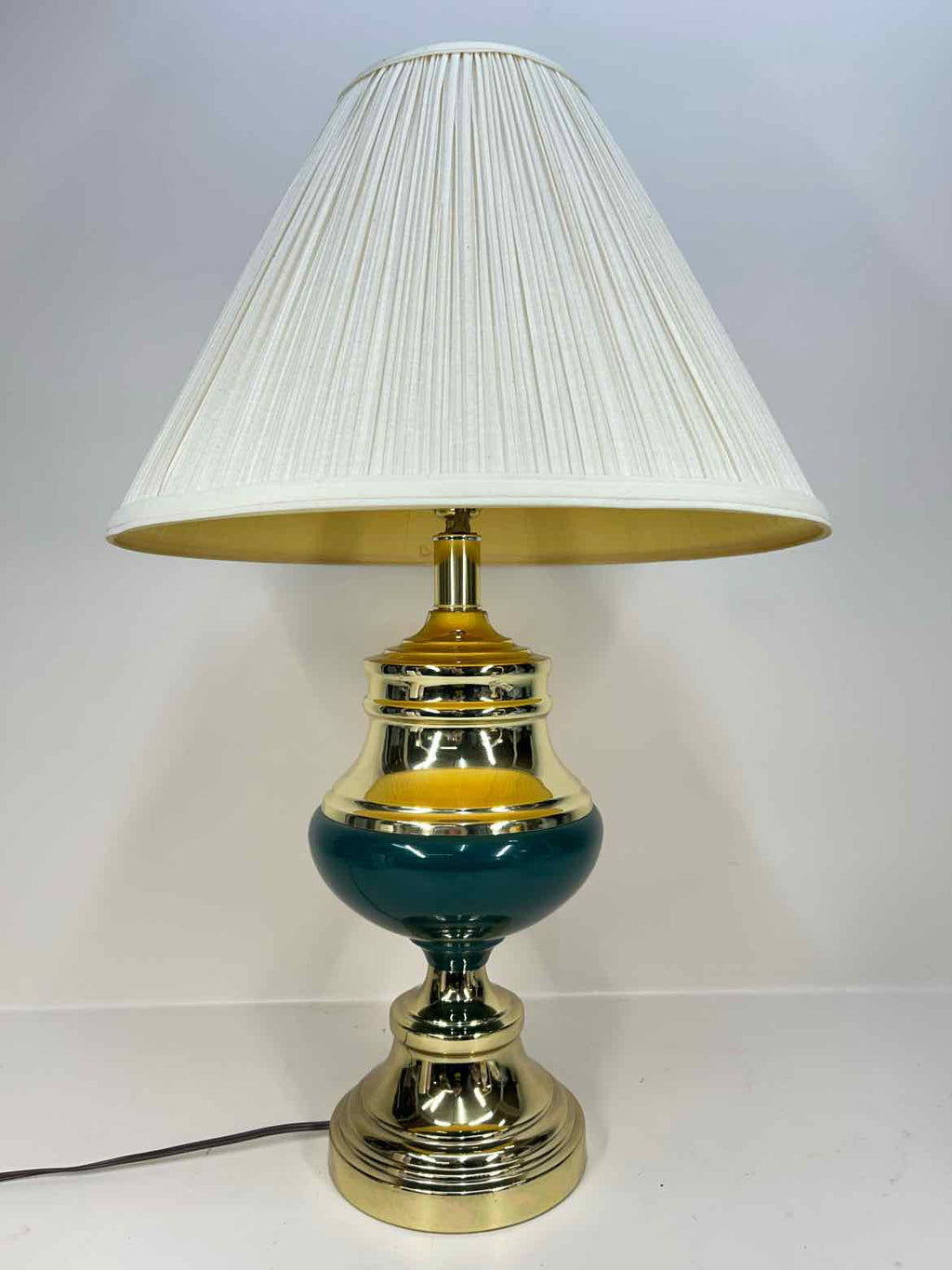 Green & Gold Table Lamp w/ Beige Shade - 28" Tall