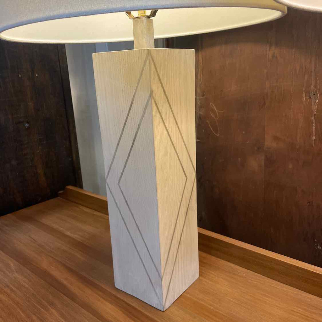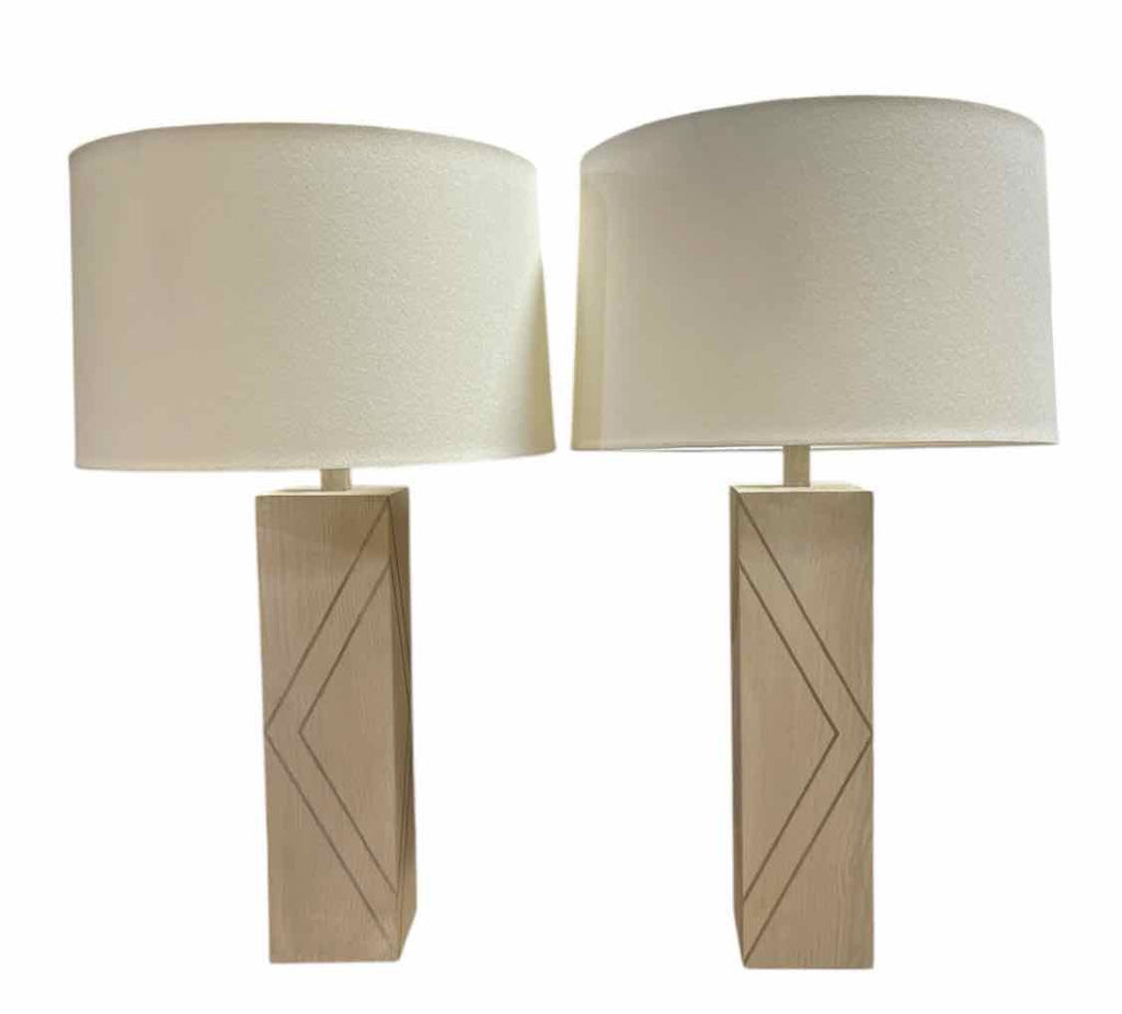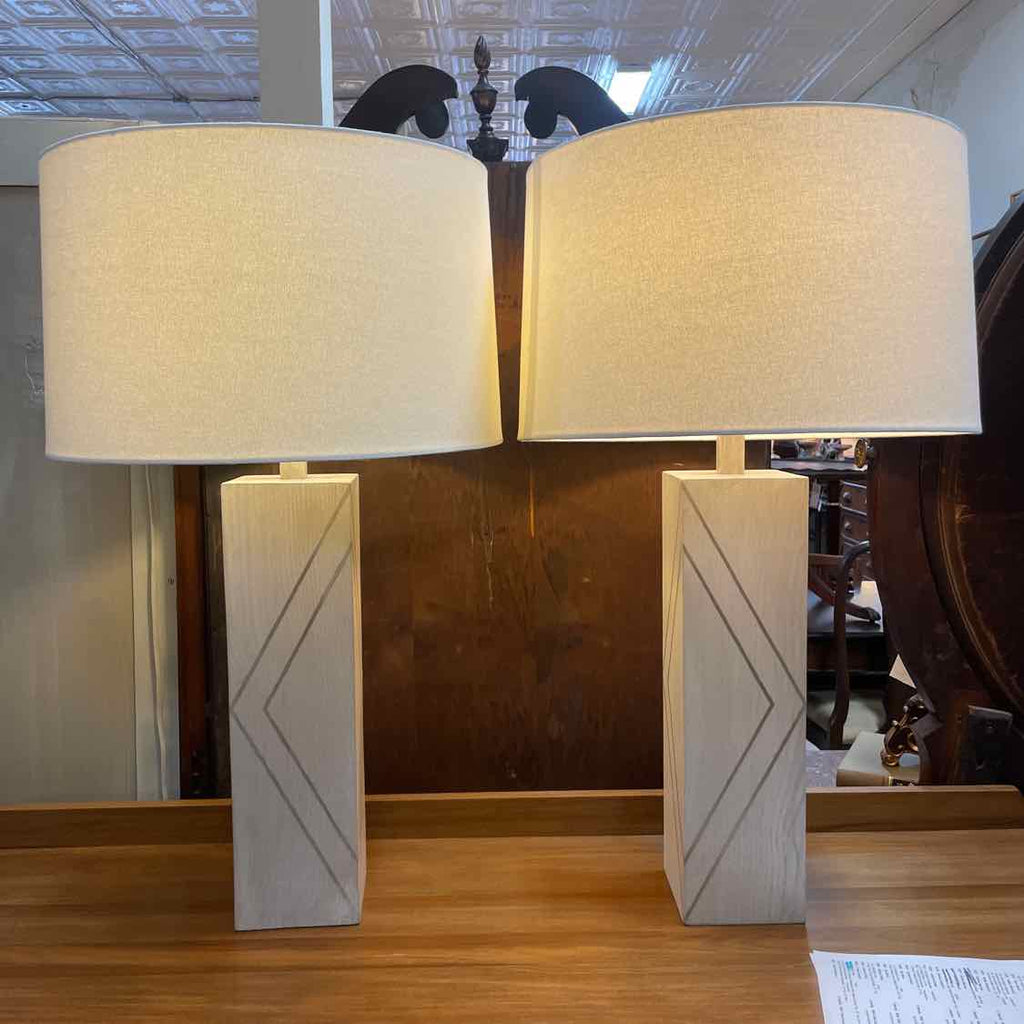 Set of 2 Large Gray Wood Lamps w/ Drum Shades - 33.5" Tall