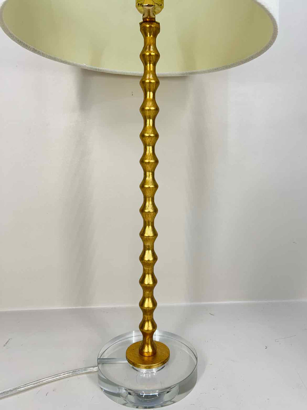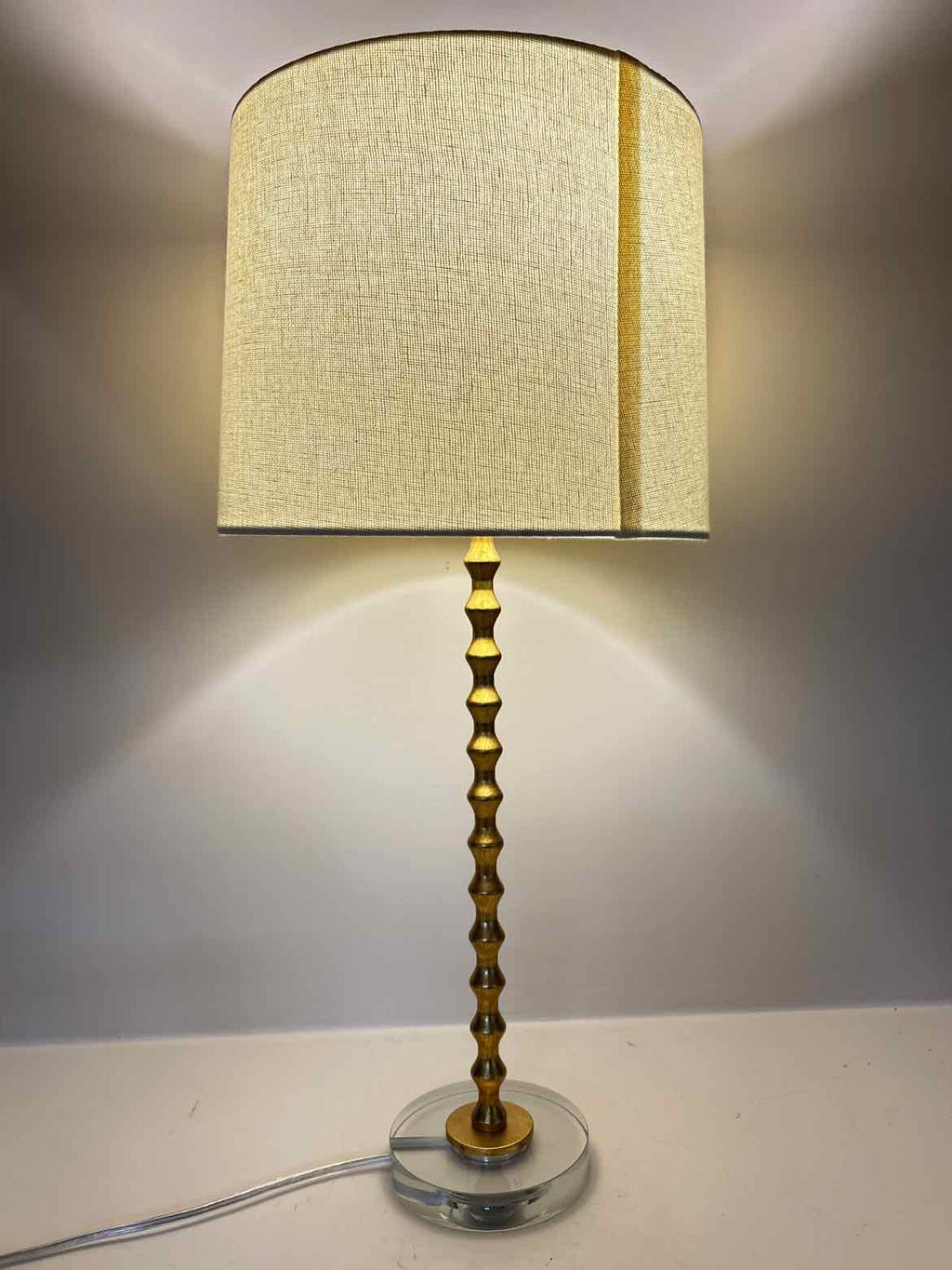 Gold Metal & Clear Acrylic Lamp w/ Beige Shade - 28.5" Tall