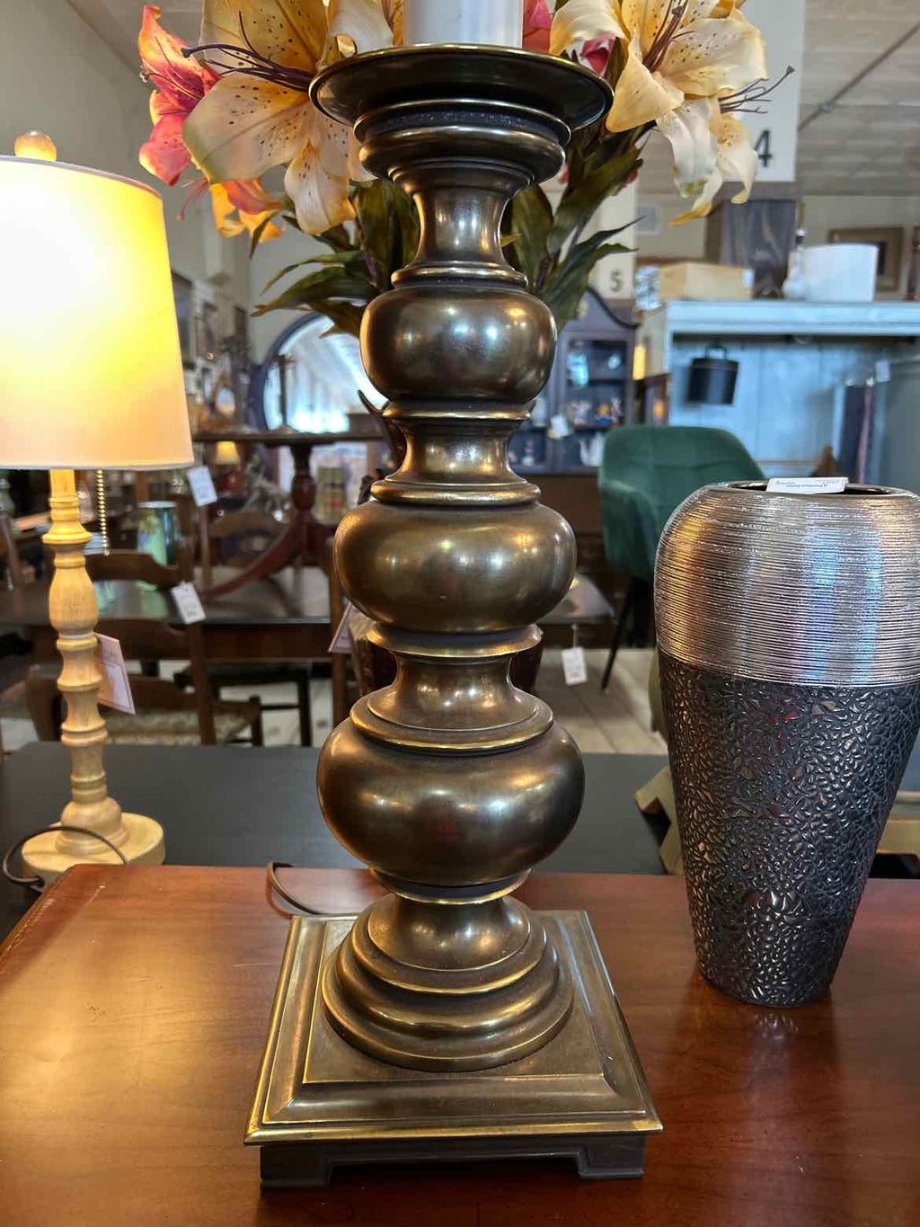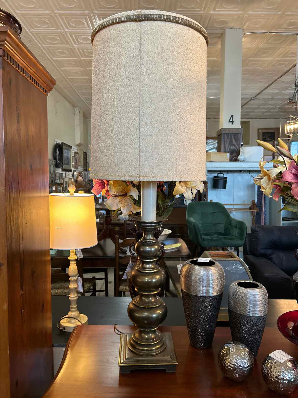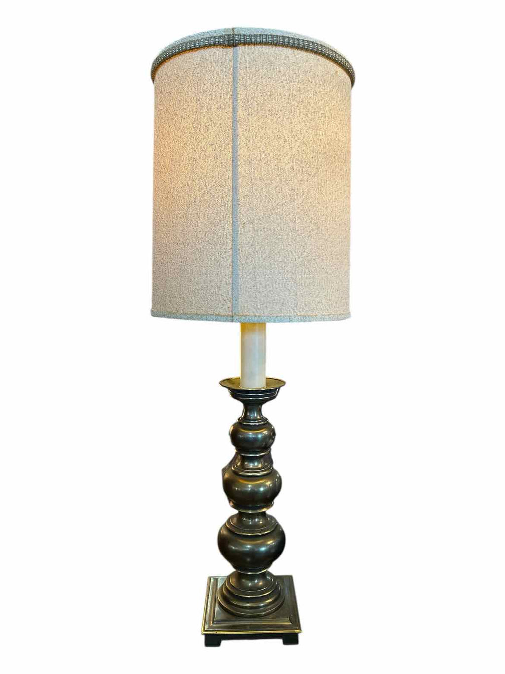 Heavy Brass Lamp w/ Beige Shade - 40.5" Tall