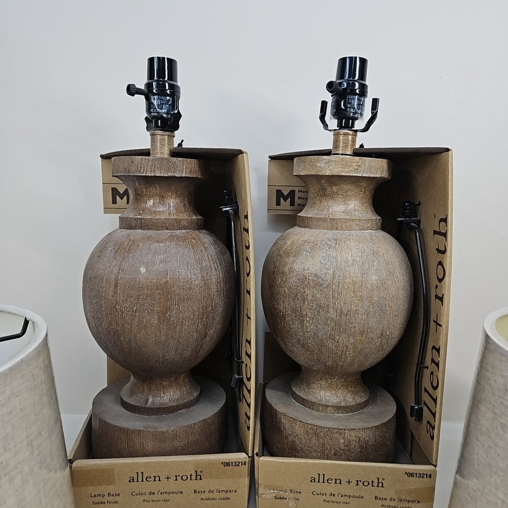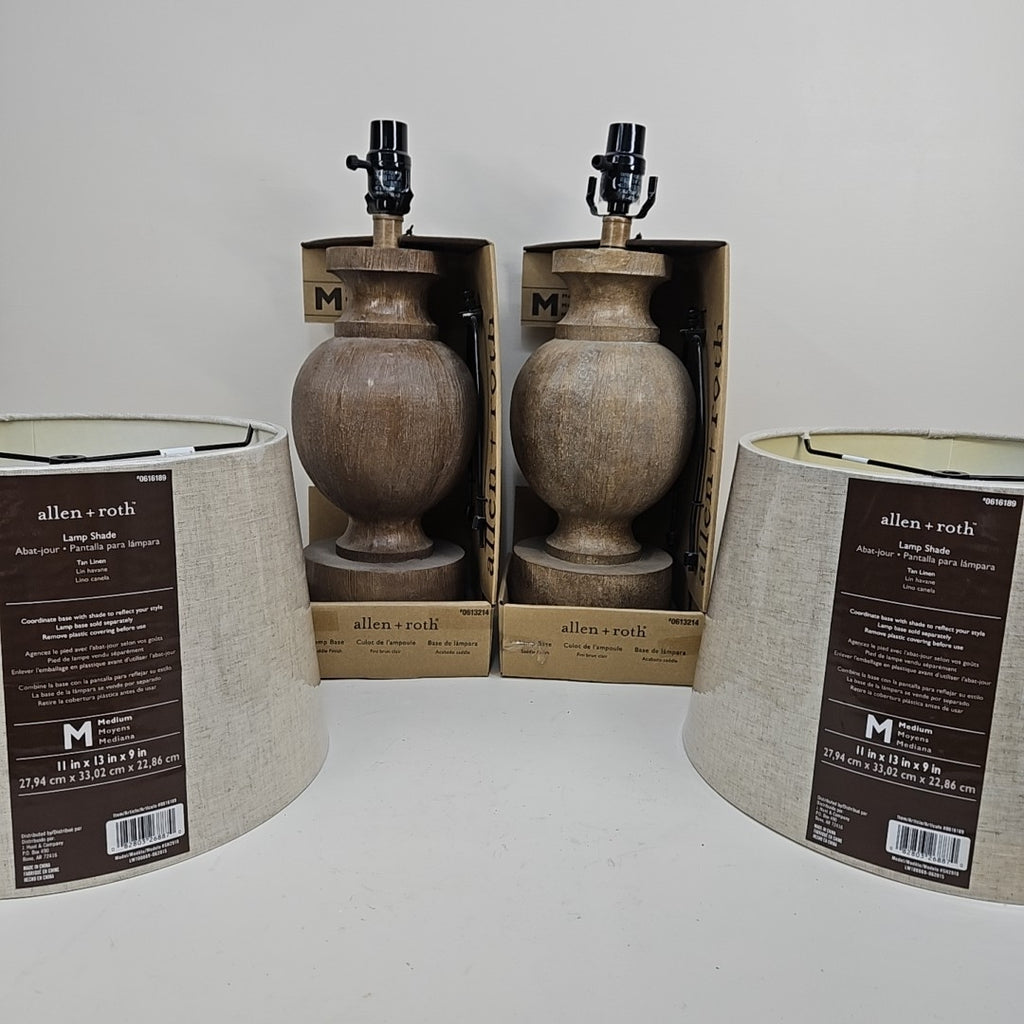 Set of 2 Brand New Allen & Roth Lamps w/ Tan Linen Shades - 24" Tall