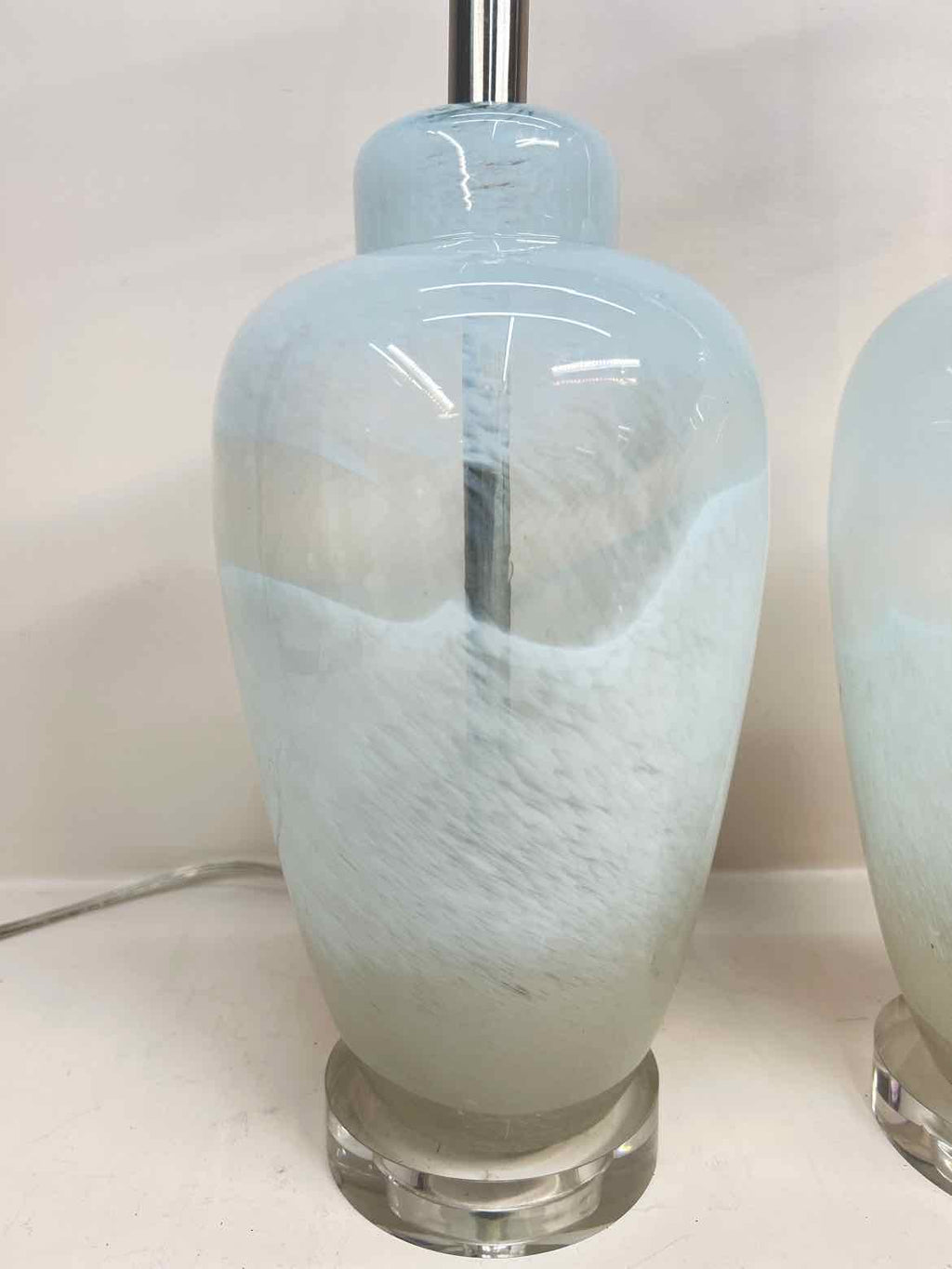 Set of 2 White Blown Glass Style Lamps - No Shades - 27" Tall