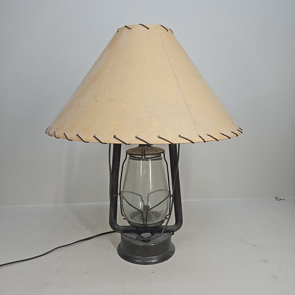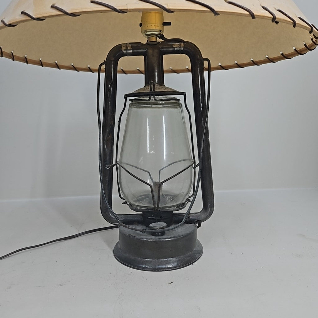 Vintage Oil Lantern Converted to Electric w/ Tan Shade - 22" Tall