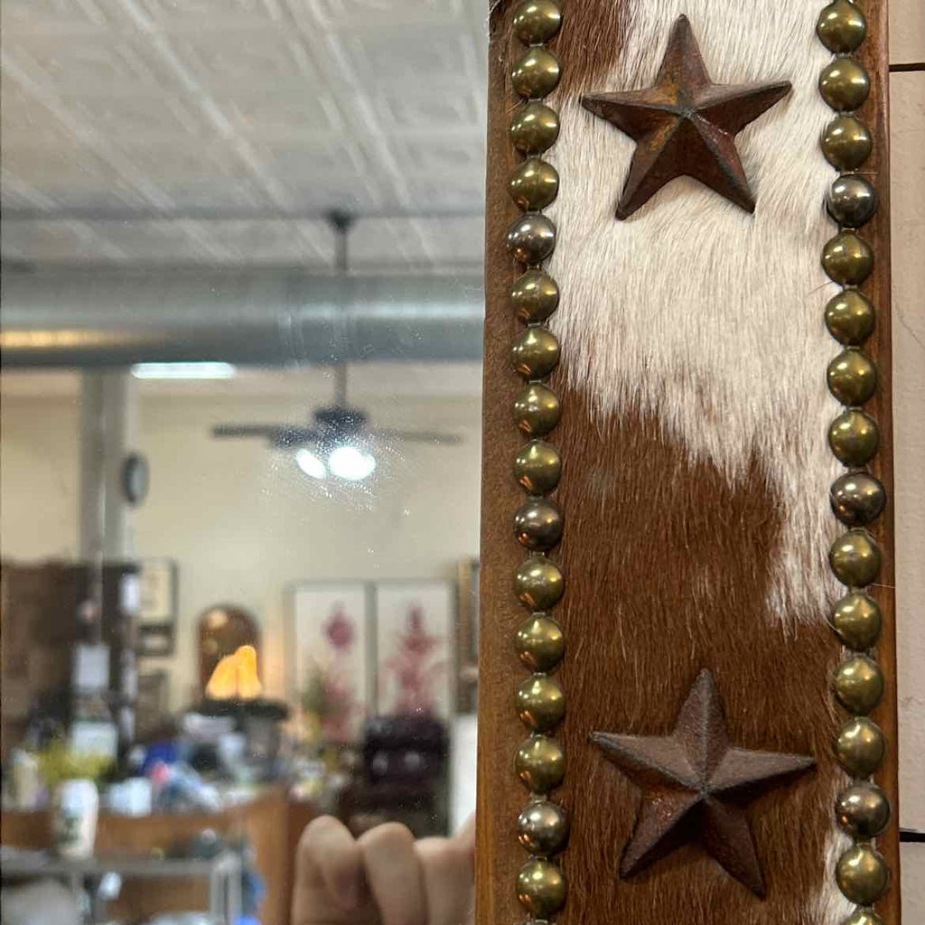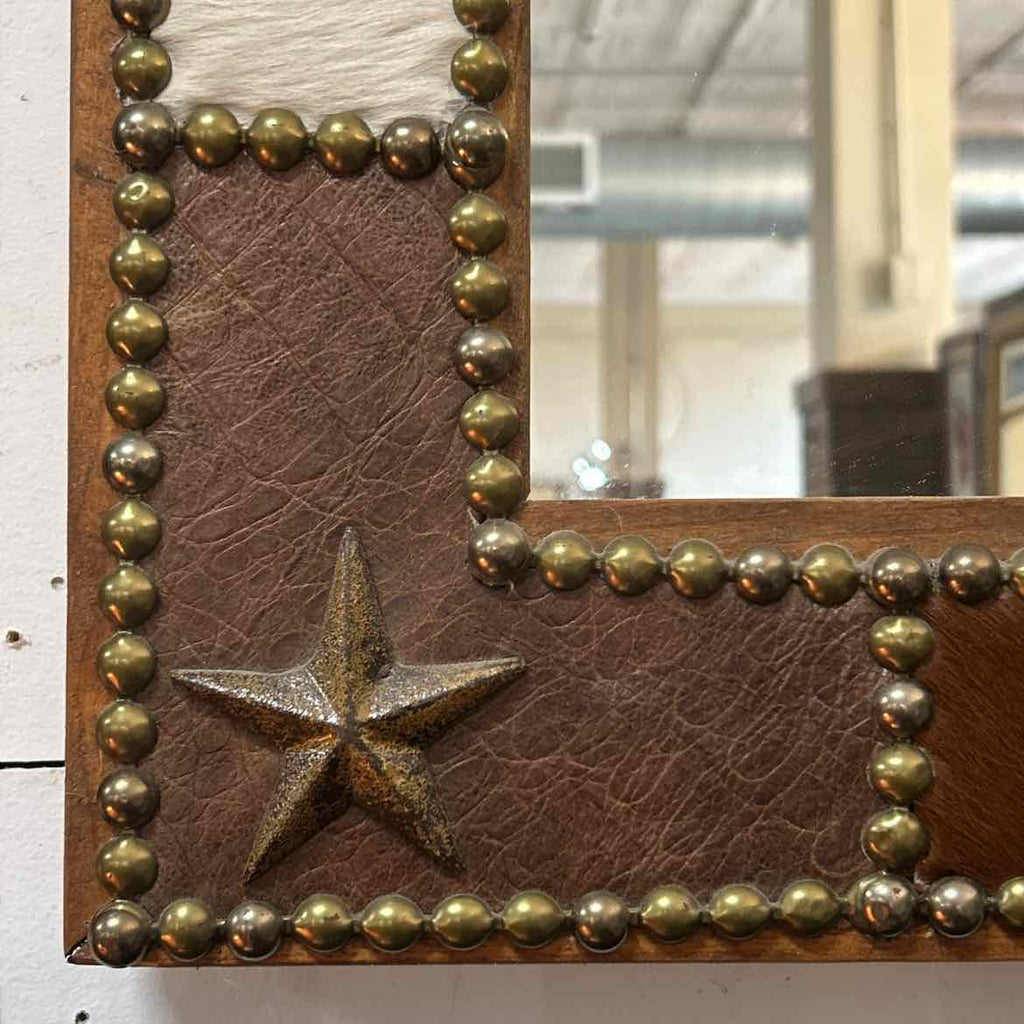 Cow Hide Framed Solid Wood Mirror w/Nailhead Trim - 25" Tall x 21" Wide