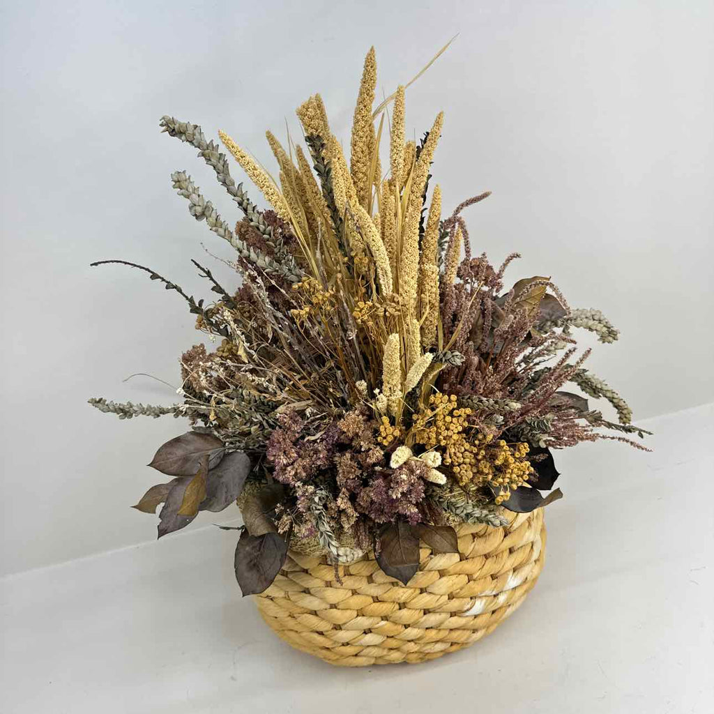 Faux Dried Floral Arrangement in Basket - 25" Tall x 13" Wide