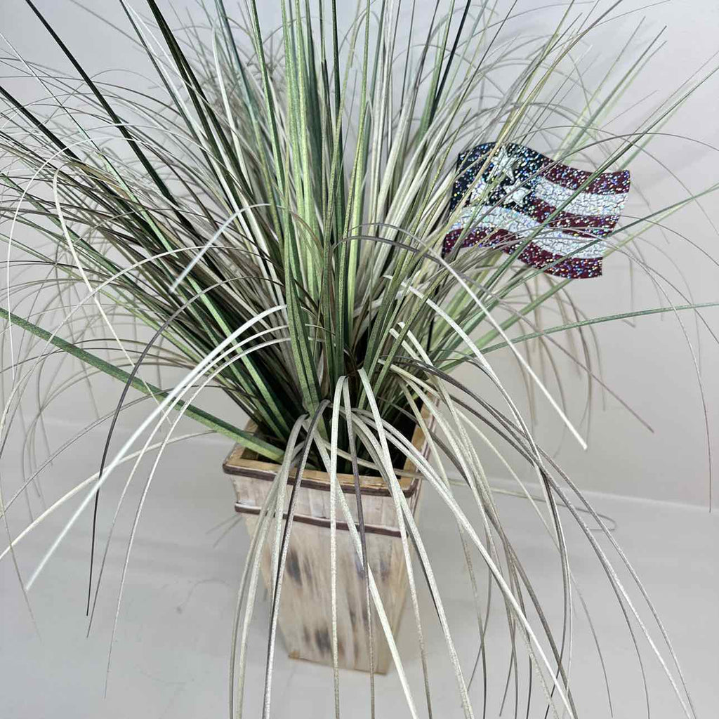 Faux Grass in Wood Planter - Roughly 25" Tall