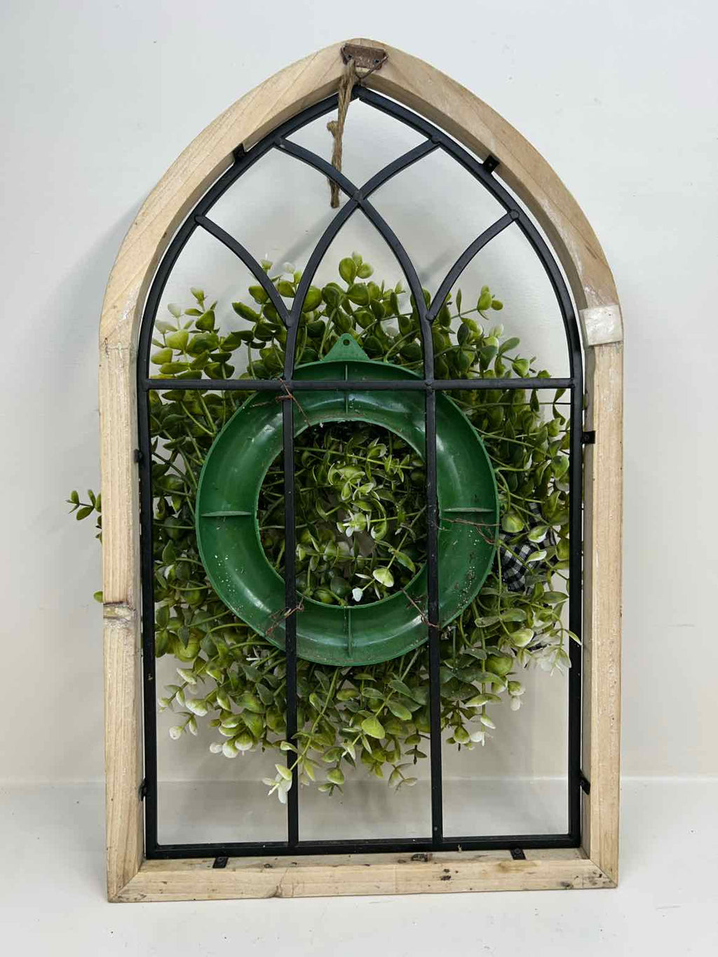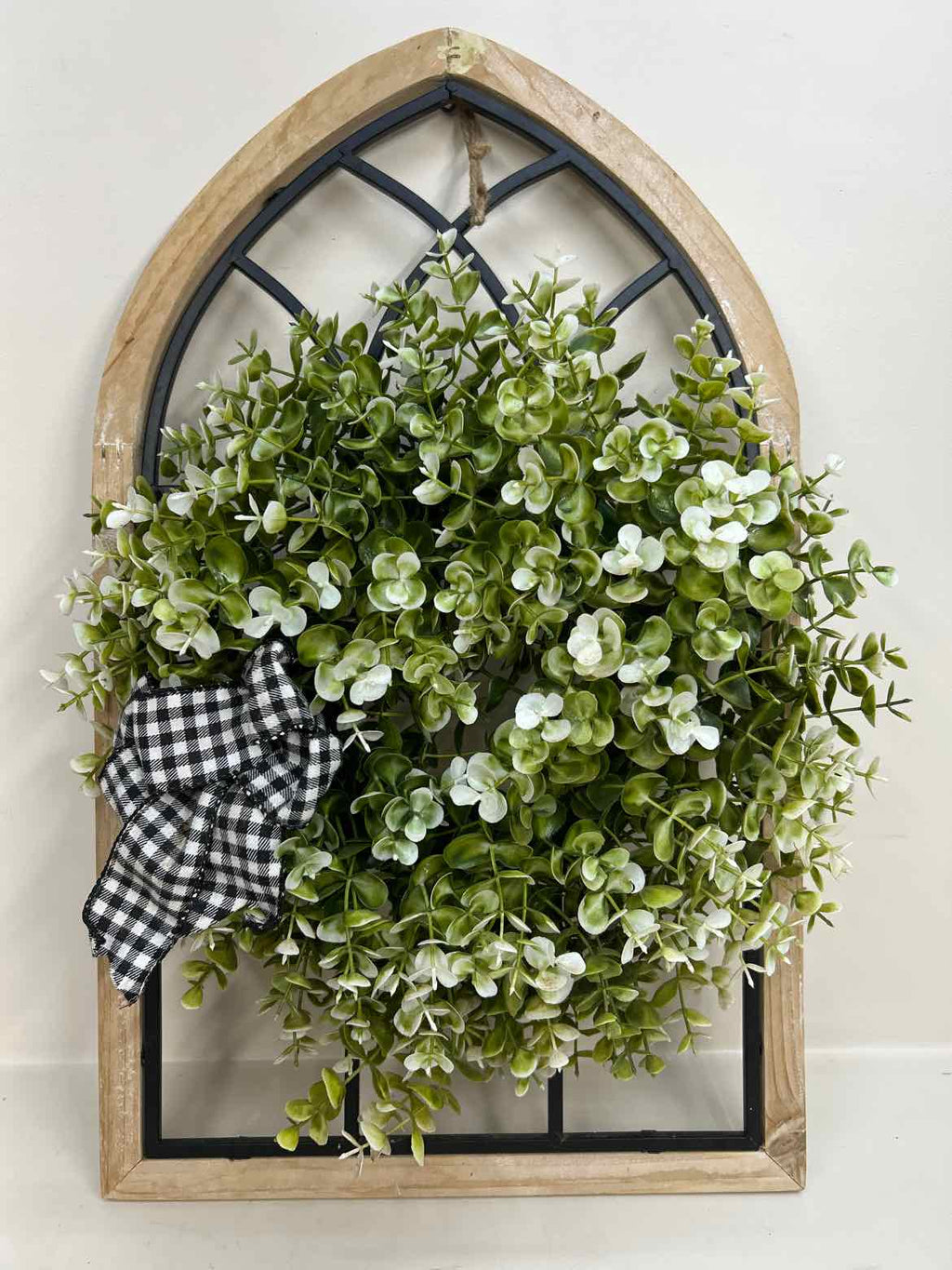 Wood Framed Window Style Wall Decor w/ Faux Greenery - 22" Tall x 13" Wide