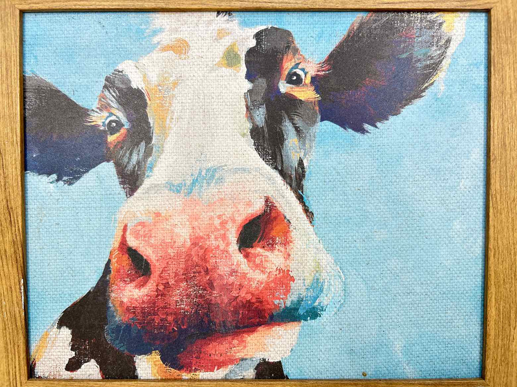 Wood Framed Cow Print - 10" Tall x 12" Wide