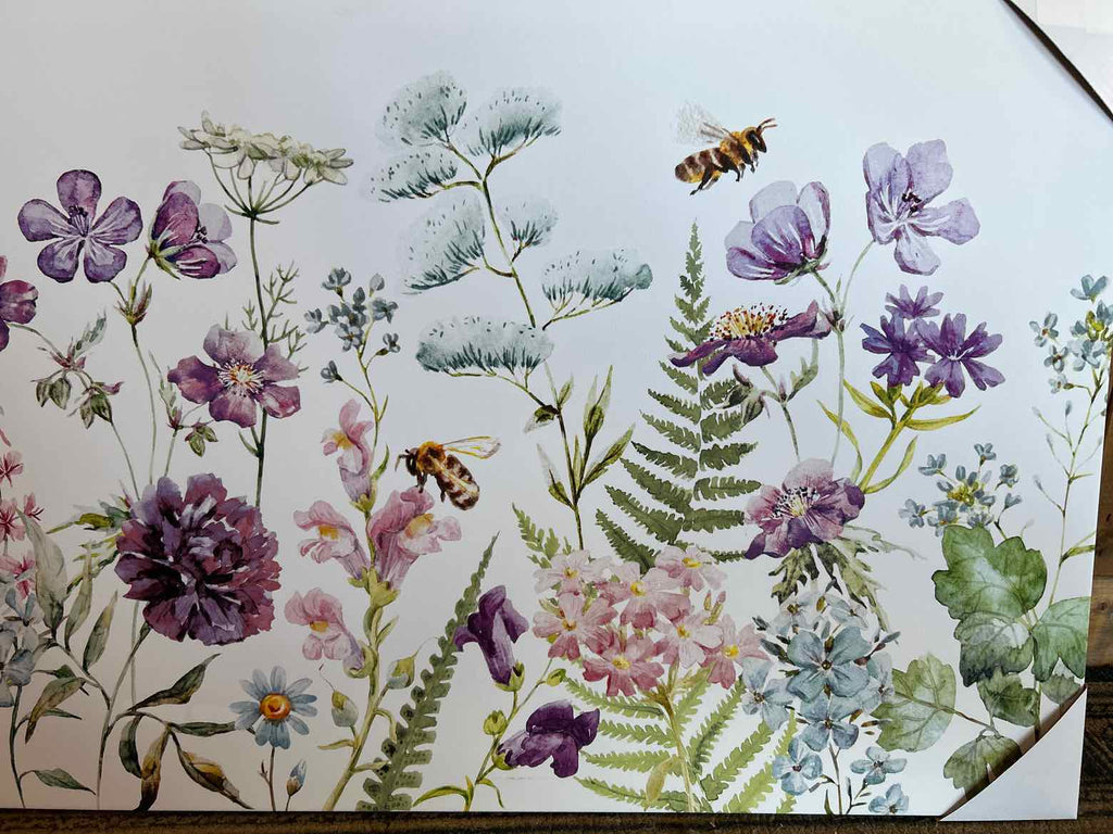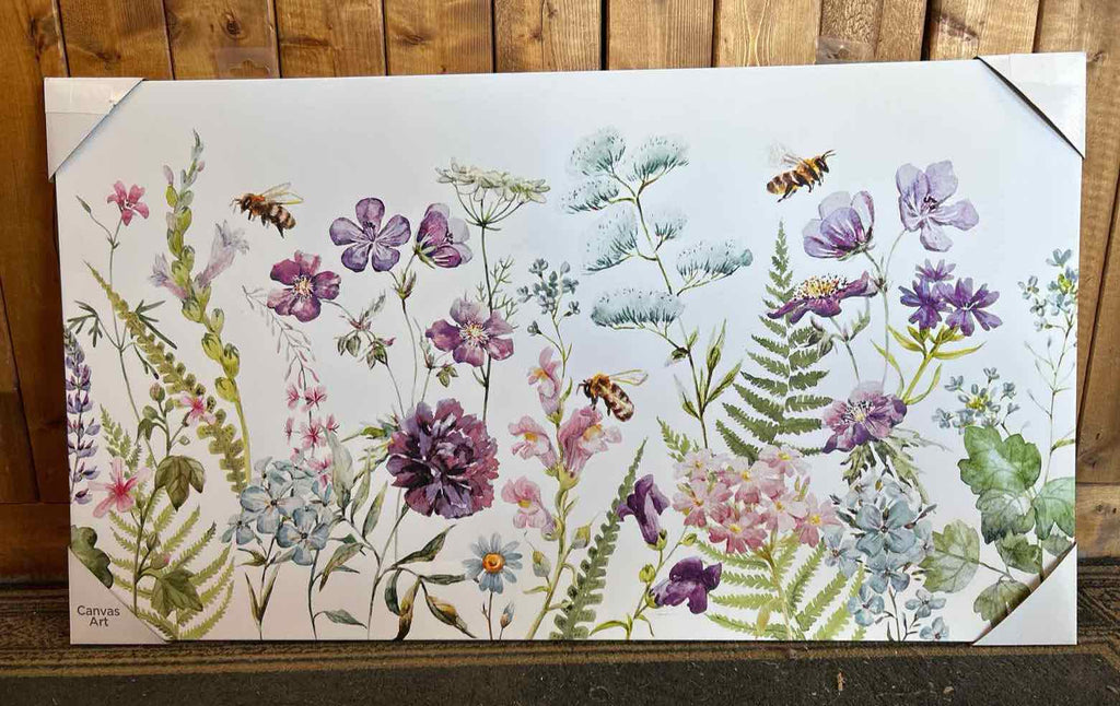 Unframed Canvas Wall Decor of Wildflowers & Bees - 18" Tall x 32" Wide